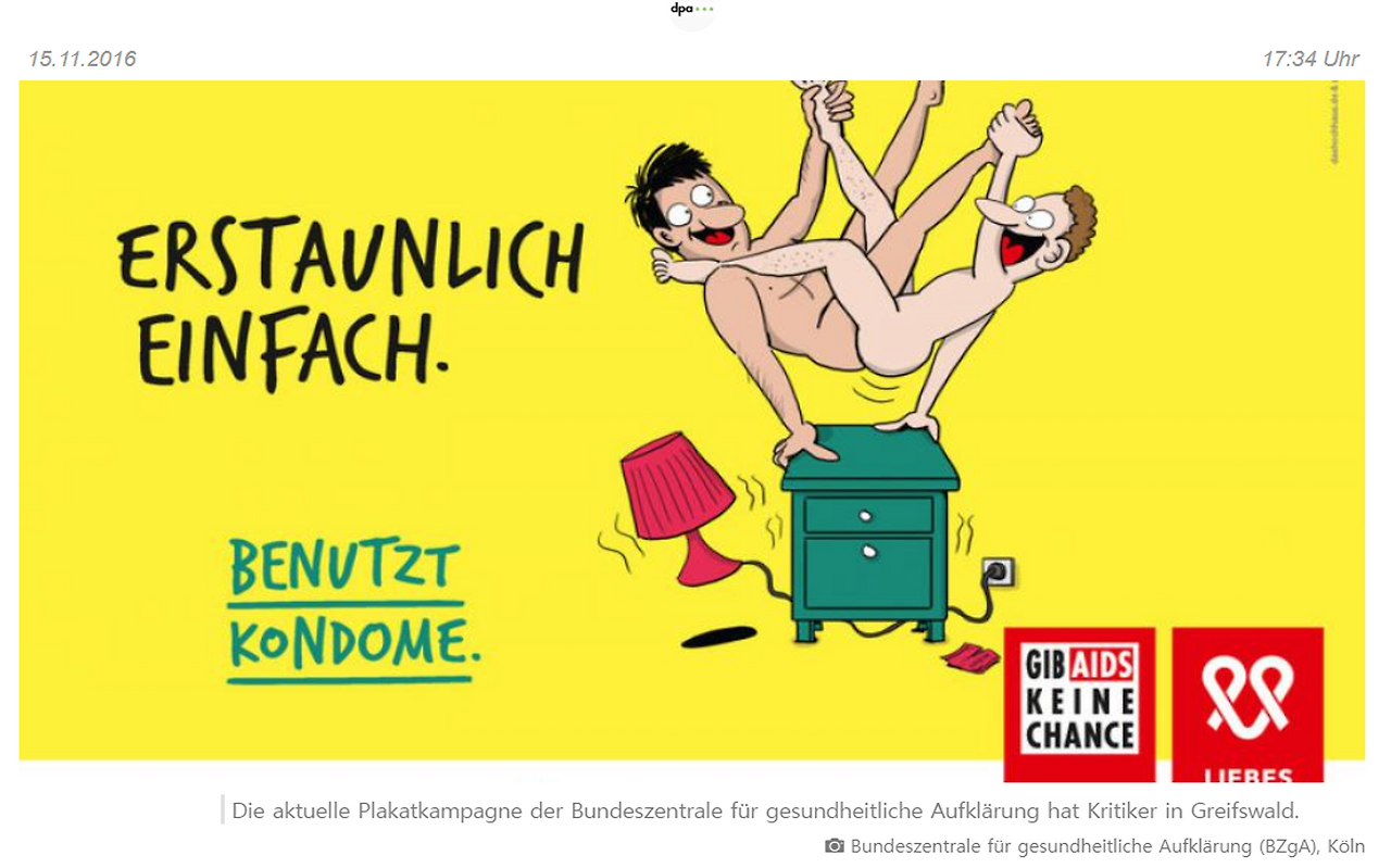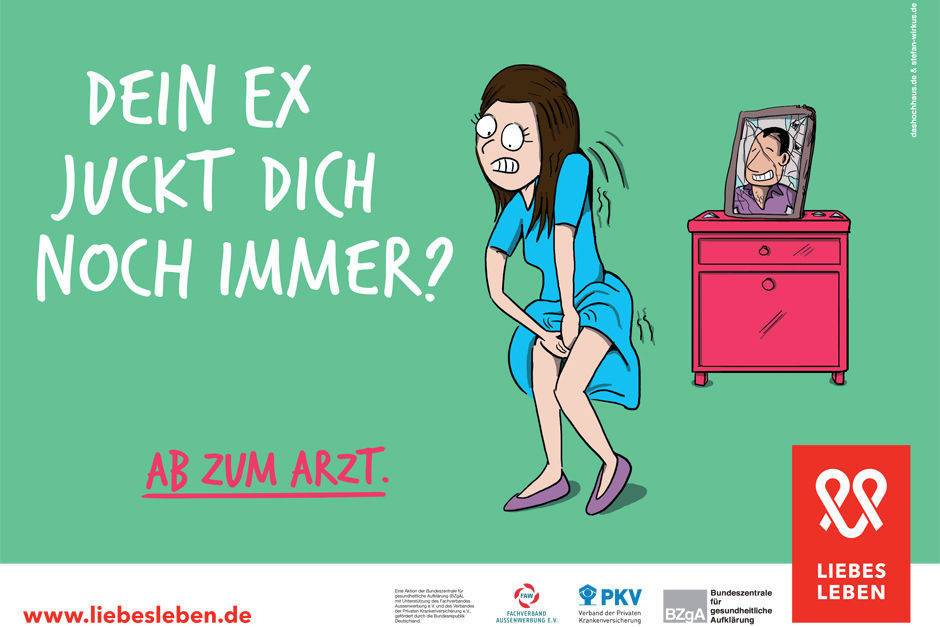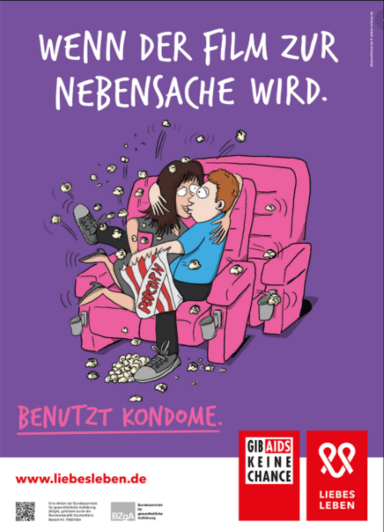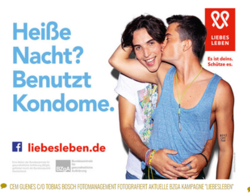 독일 베를린 지하철과 길거리에서 일주일에 2-3번은 흔하게 볼 수 있는 BZgA(Bundeszentrale für gesundheitliche Aufklärung 건강한 성교육을 위한 독일 연방제 본부)의 공익광고이다.