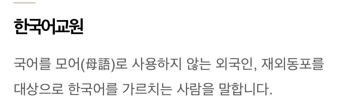 한국어 교원이 되려면 교육부에서 발급되는 초•중등학교 선생님들께서 가지고 계신 정교사 자격증과 별개로 문체부에서 발급하는 자격증을 따로 취득해야 한다.