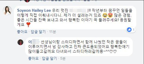 수업을 하면서 나눴던 작은 꿈들을 정말 이뤄내고, 지금은 첫 해외경험과 함께 본인이 하고 싶었던 일들을 하며 행복한 모습들을 보여주고 있다. 그 모든 꿈들을 이룰 수 있었던 원동력이, 함께 영어공부를 하며 나눴던 꿈에서 비롯되었다니!! 나의 또 하나의 퍼스널 브랜드인 "라이프 영어 컨설턴트" 가 완벽하게 이루어졌기에, 감동할 수 밖에 없었던 이야기이다.