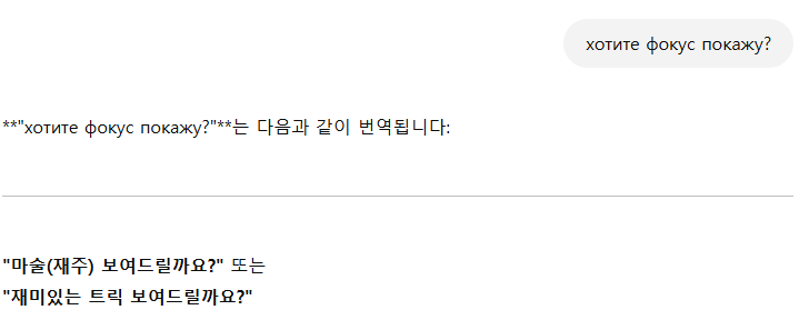 화면의 초점이 안 맞는다는 것인지, 뭘 보여달라는 것인지 이해가 되질 않았다. 챗GPT에게 물어본다. 번역하는 데 자주 썼기에 메모리가 업데이트되어 있는지라 러시아어 문장만 써도 번역을 해 준다.