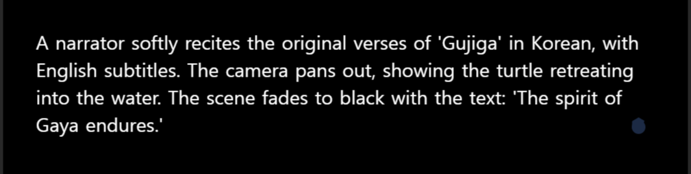 주의할 점이 있다. 영상에 문장이 들어가지 않도록 해야 한다. 스토리보드 마지막 컷에 아래와 같은 프롬프트를 썼더니 망작이 나왔다.
