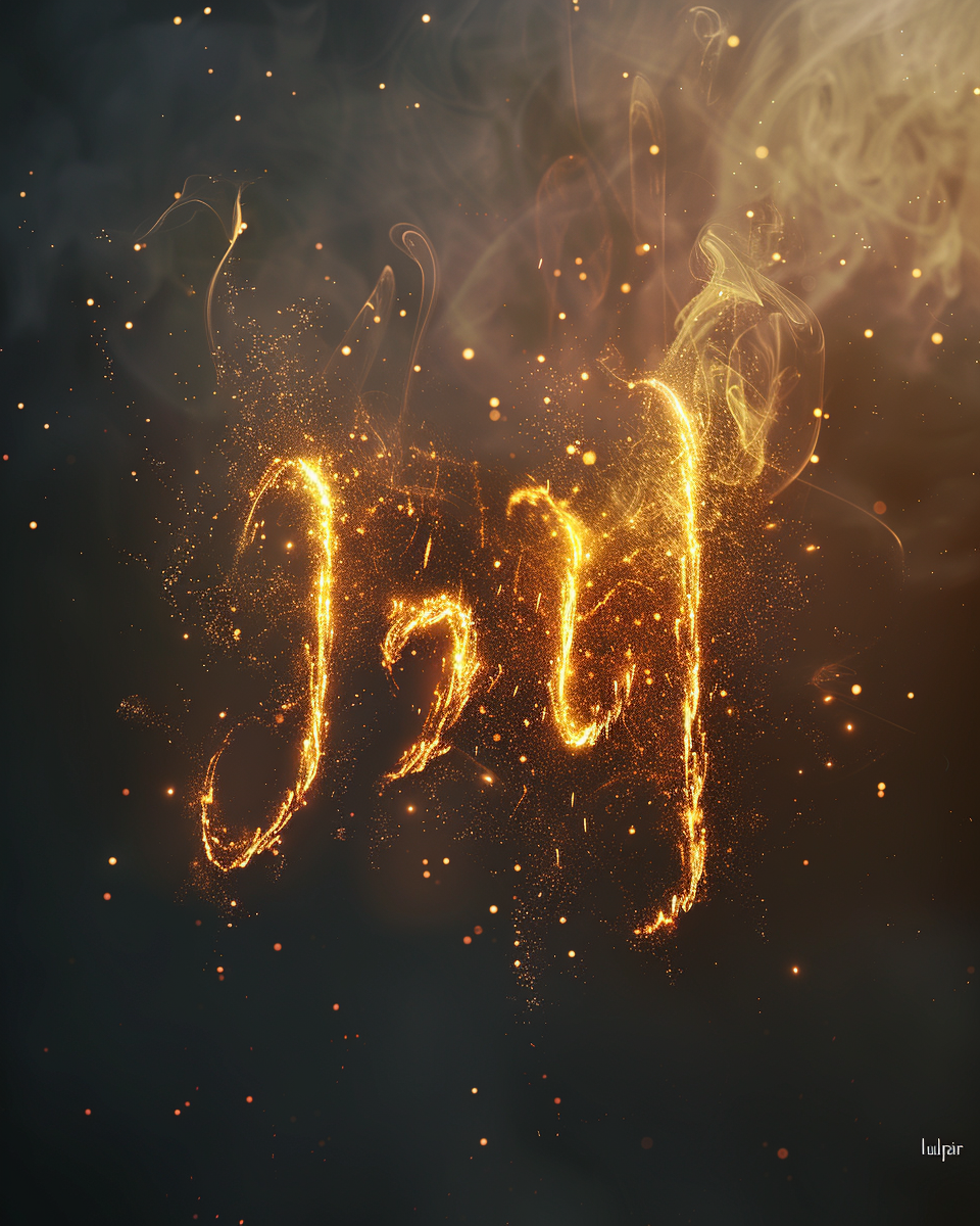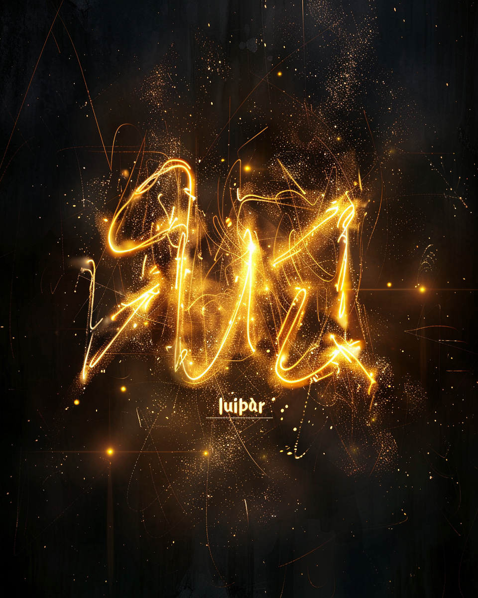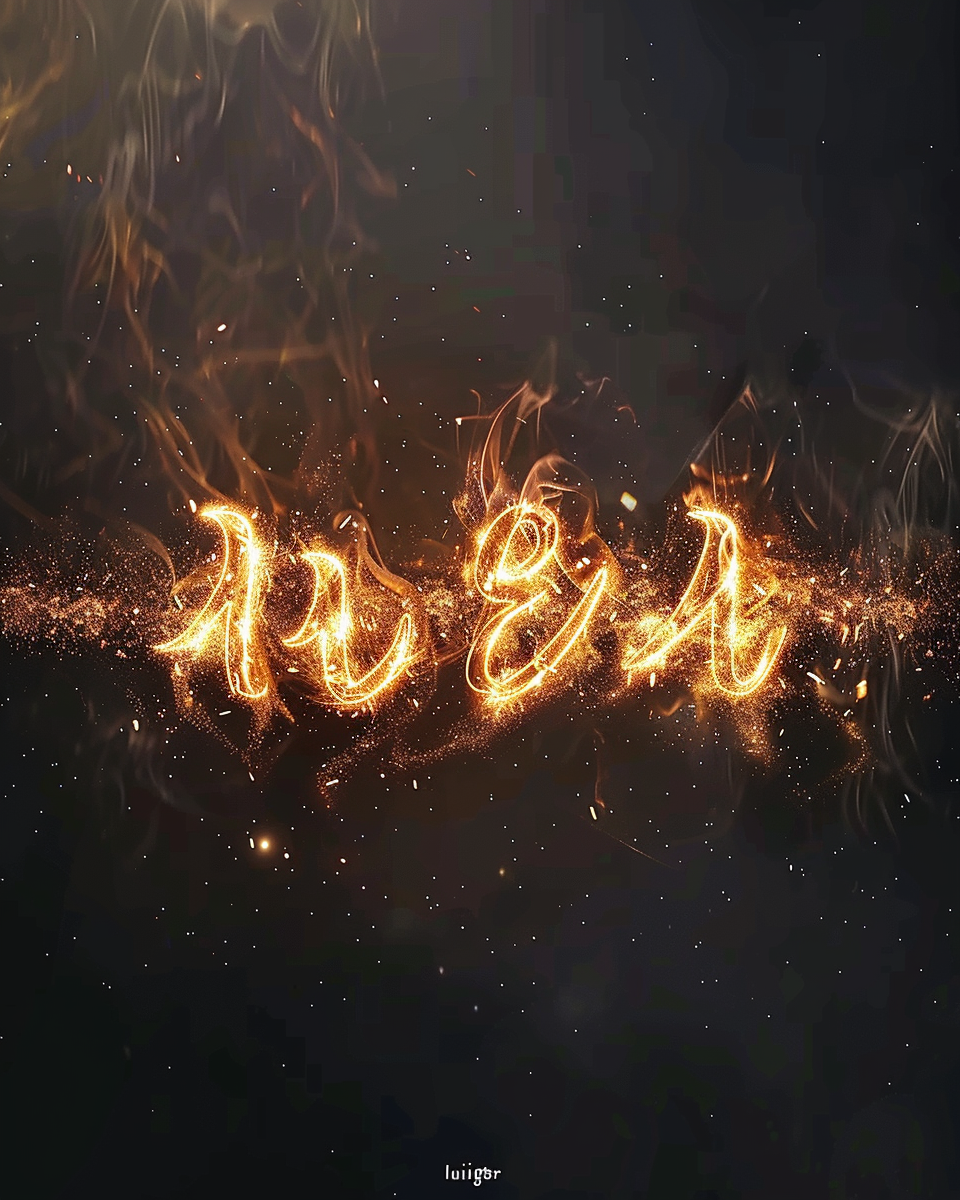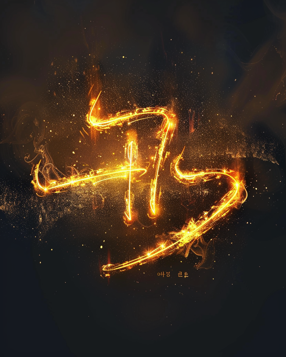 The word "한글" created with golden light painting, each stroke glowing with a warm and radiant effect, faint sparkles surrounding the letters, a dark gradient background fading into shadows, ultra-detailed and elegant, hd quality.