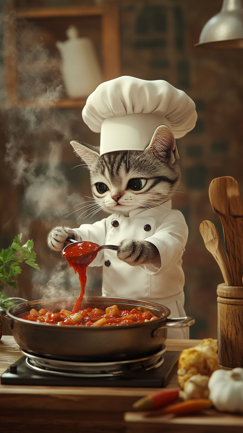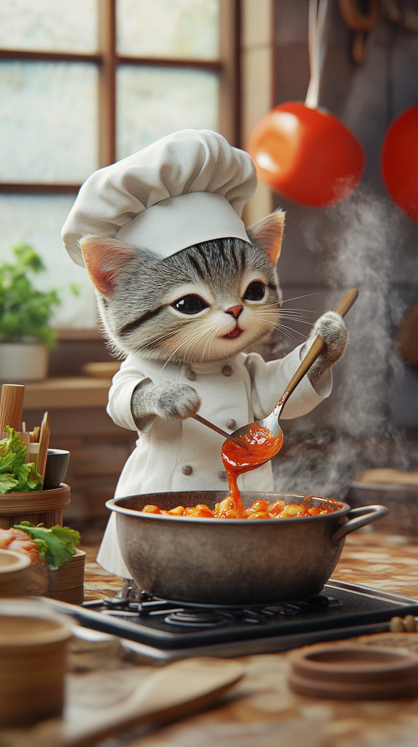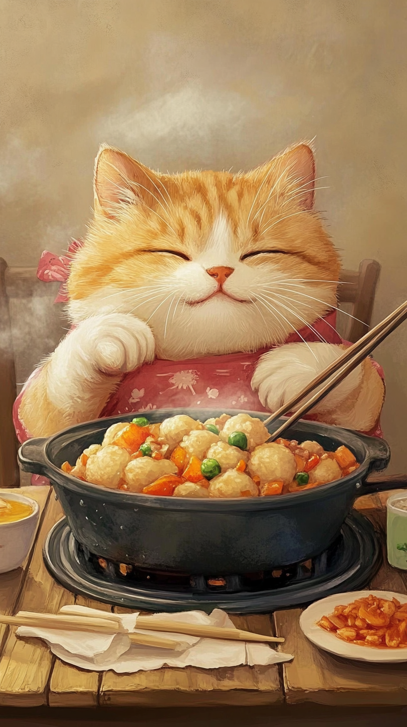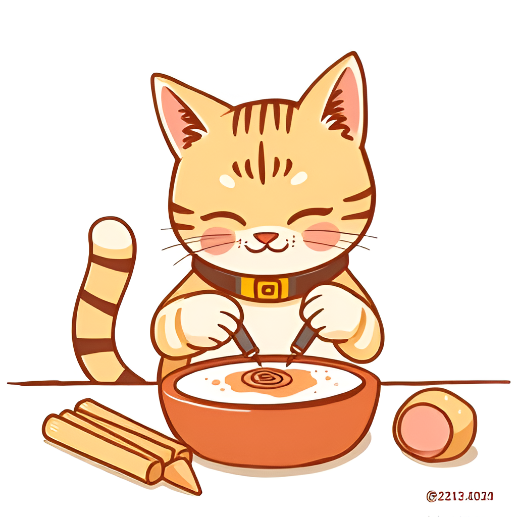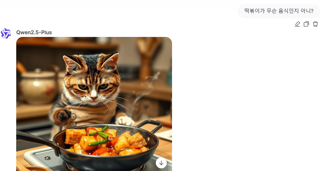 '떡볶이를 만드는 고양이를 그려 줘.'(Draw a cat making tteokbokki.)