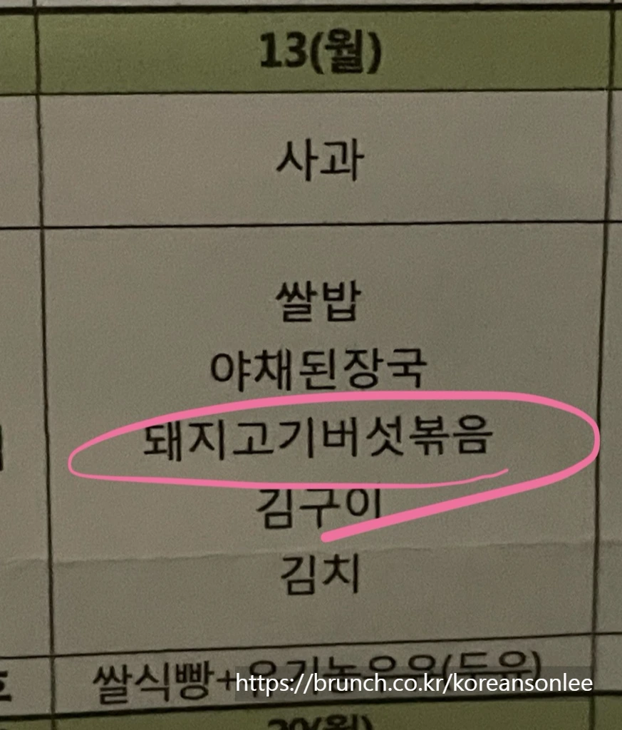 "고기 맛이 없어, 우리 어린이집 고기는 맛있는데."