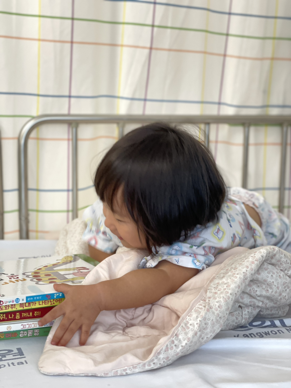 병원에 도착하여 입원 수속을 하고 병실에 짐을 풀었다. 해솔이가 워낙 잠자리에 예민하기도 하고, 코로나19 시국이 걱정되어 1인실이나 2인실에 머물길 희망했지만 병실이 여의치 않아 4인실에 머물게 된 점이 못내 아쉬웠다. 낯선 병실에 채 적응하지 못했는데 호출이 와서 곰돌이와 토끼가 그려진 어린이용 환자복으로 갈아입은 해솔이와 함께 이비인후과 의사 선생님을 찾아갔다. 의사 선생님께 내일 있을 수술에 대한 전반적인 설명과 유의사항을 들으면서 수술 날짜가 내일로 다가왔다는 현실이 좀 더 실감이 났고, 걱정은 점점 커져만 갔다. 아데노이드 제거 수술이 비교적 간단한 수술이고, 수술 후에도 부작용이 나타날 확률이 비교적 낮다는 의사 선생님의 설명에도 마음이 안심되지 않았다. 머릿속에는 '만에 하나라도'라는 생각이 자꾸 떠올랐고, 수술 후의 통증 때문에, 수술 후 6시간 동안의 금식 때문에 힘들어하는 해솔이의 모습이 자꾸 생각나 의사 선생님의 말씀은 잘 귀에 들어오지 않았다.