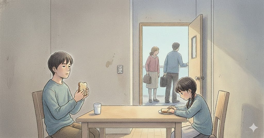 식탁 위에는 늘 그렇듯 토스트와 우유 한 잔이 놓여 있었다. 준비한 건 엄마였다. 하지만 식탁 앞에 앉은 이안을 바라보는 사람은 아무도 없었다. 엄마는 출근 준비로 분주했다. 손에는 가방을 들고 있었고, 머리카락을 질끈 묶으며 재빨리 구두를 신었다.