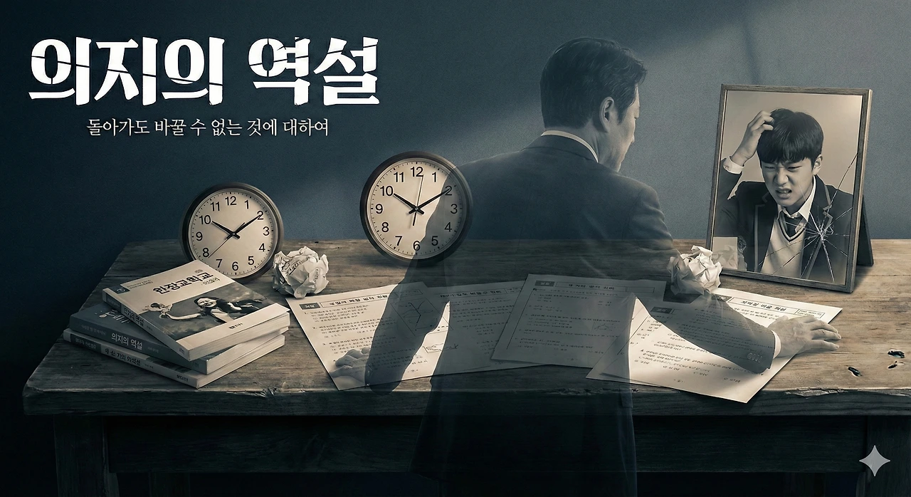 2. 작품 개요 * 제목: 의지의 역설 (The Paradox of Will) * 장르: 하이퍼 리얼리즘, 심리 드라마 * 핵심 주제: 후회의 기만성과 인간 본성의 불변성 * 주요 타겟: 학벌 중심 사회에서 과거를 후회하는 30-40대 성인층