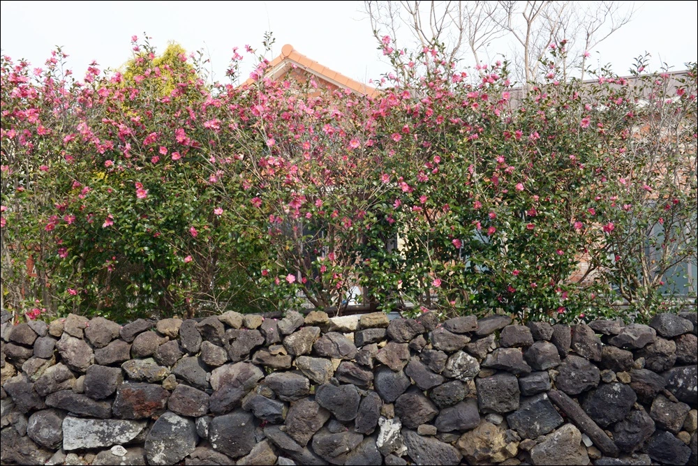 제주하면 떠오르는 꽃 중의 하니인 동백, 위미리 마을은 동네 가로수 뿐만 아니라 집안 곳곳에 잘 가꾸어진 동백 나무를 많이 만나게 된다. 붉은 동백뿐만 아니라 다양한 색의 동백나무를 살피다보면 나도 모르게 시선이 뺴앗기고 한참을 서서 연이어 셔터를 누르게 되는 아름다운 나무.