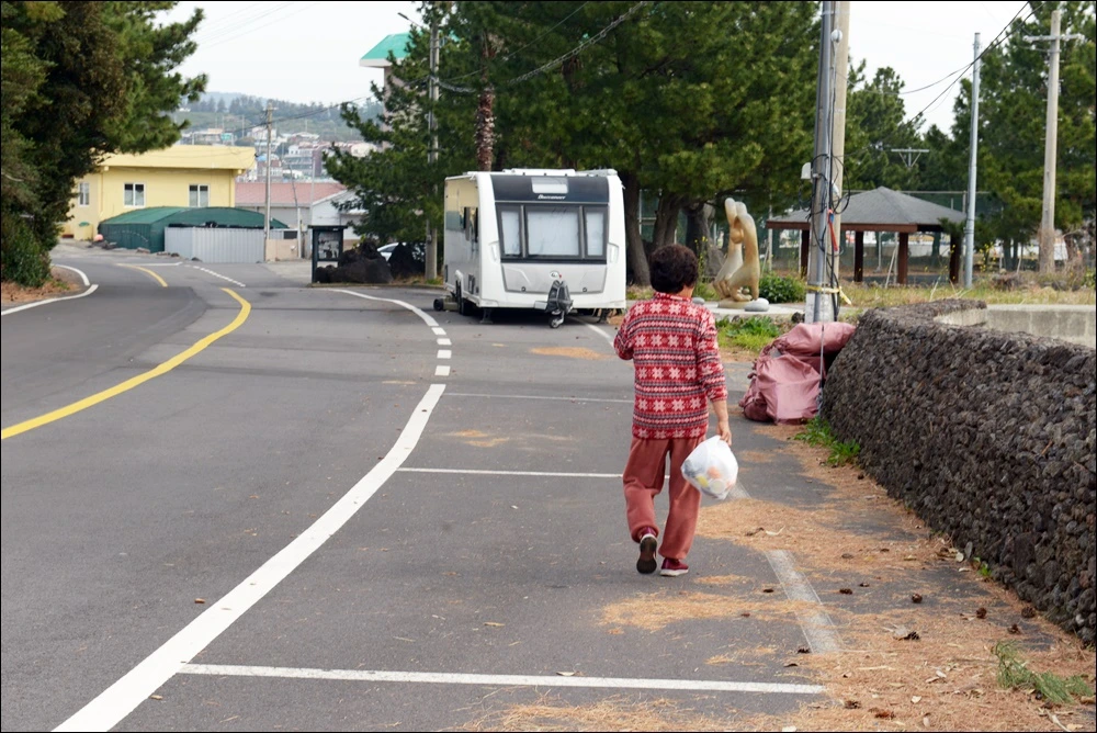 포스 넘치는 위미리 동네 할머님의 걸쭉한 제주도 사투리를 들으며 걷고 있자니 오랜만에 듣는 제대로 된 제주도 사투리에 이리 신날일인가. 제주에 내려온지 10년이 되었지만 아직도 사투리는 낯설기도 어렵다. 하지만 종종 이렇게 할머니들의 사투리를 들으면 뭔가 활기가 느껴져 정겹게 느껴진다. 아, 내가 지금 여기 제주도 있구나라는 것을 더욱 실감나게 한다고 할까? 할머니와 눈이 마주치고 짧게 인사를 나누고 다시 길을 걸어본다.