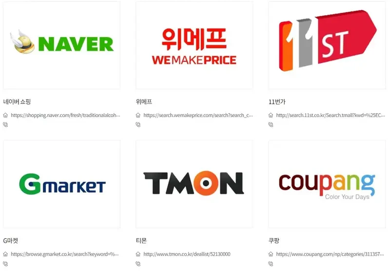 전통주를 판매할 수 있는 일부 일반 인터넷 쇼핑몰 @더술닷컴 화면캡쳐