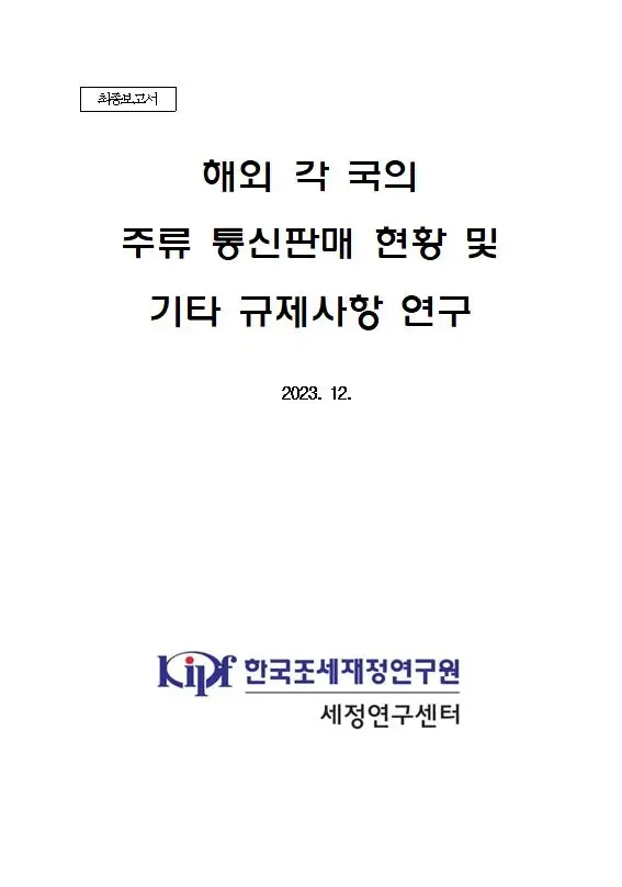 한국조세재정연구원의 주류 통신판매 보고서 @한국조세재정연구원