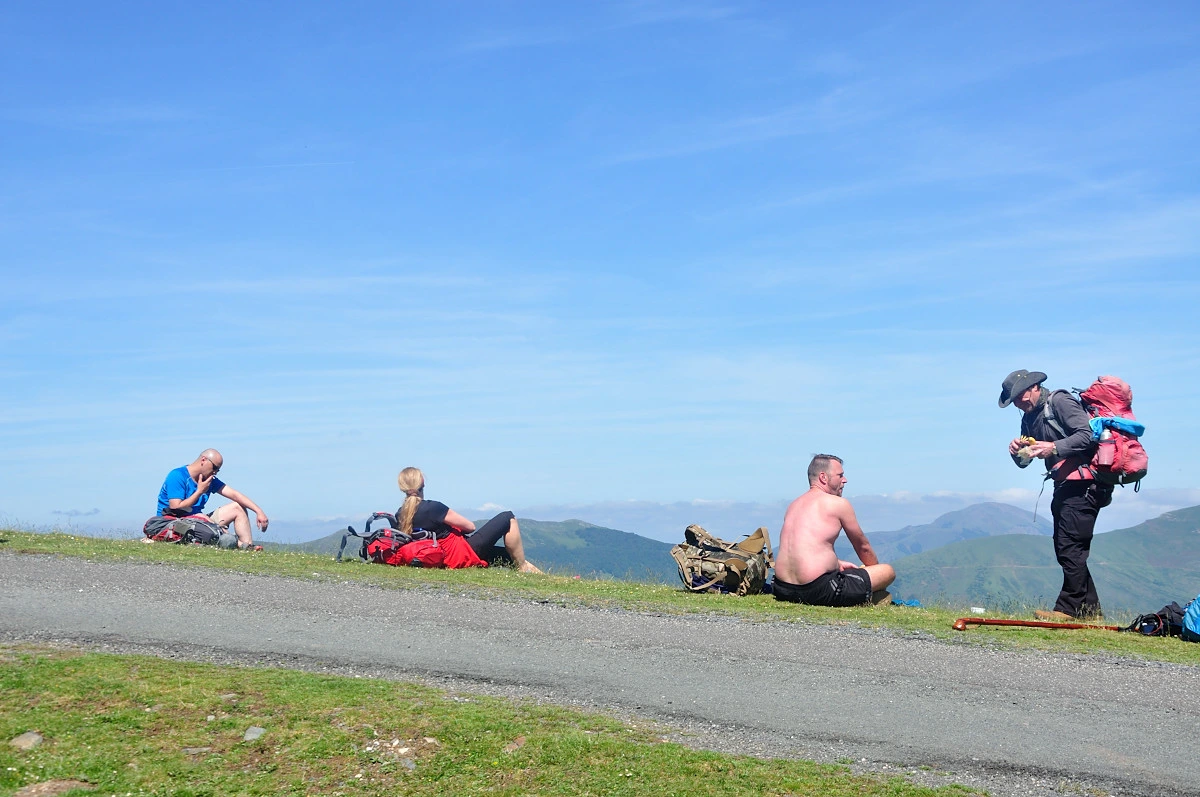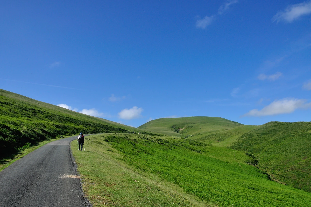처음의 가파른 오르막을 올라 다시 포장된 도로길을 만난다. 그리고 머지 않아 Orisson 알베르게가 눈앞에 나타났다. 생장의 오스피탈레로는 여기서 점심을 먹으라고 안내하지만 점심식사를 하기에는 너무 이른 8시 정도밖에 되지 않은 시간이다. 게다가 쉬어가는 사람들이 너무나 많아 왁자지껄했다. 쉬어갈 의자도 보이지 않아 우리는 지나치기로했다. 걷다가 적당한곳에서 털썩 주저앉아 쉬기위해...