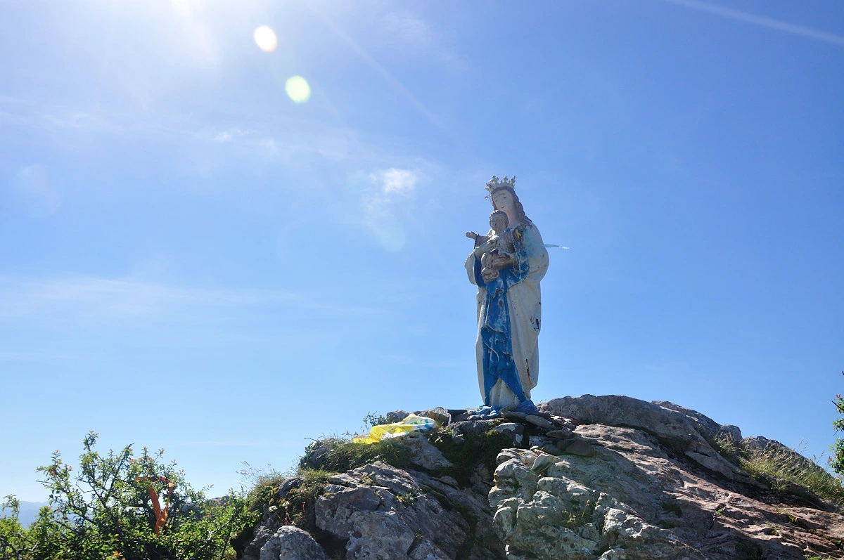 오르막 갈림길에 올라서기 전에 돌로 만들어진 십자가가 보인다. 무어가 쓰여져 있지만 알 수가 없다. 유추해보려고 해도 이해가 되지 않는다. 이 돌 십자가는 나중에 어떤 의미인지 찾아봐야 겠다.