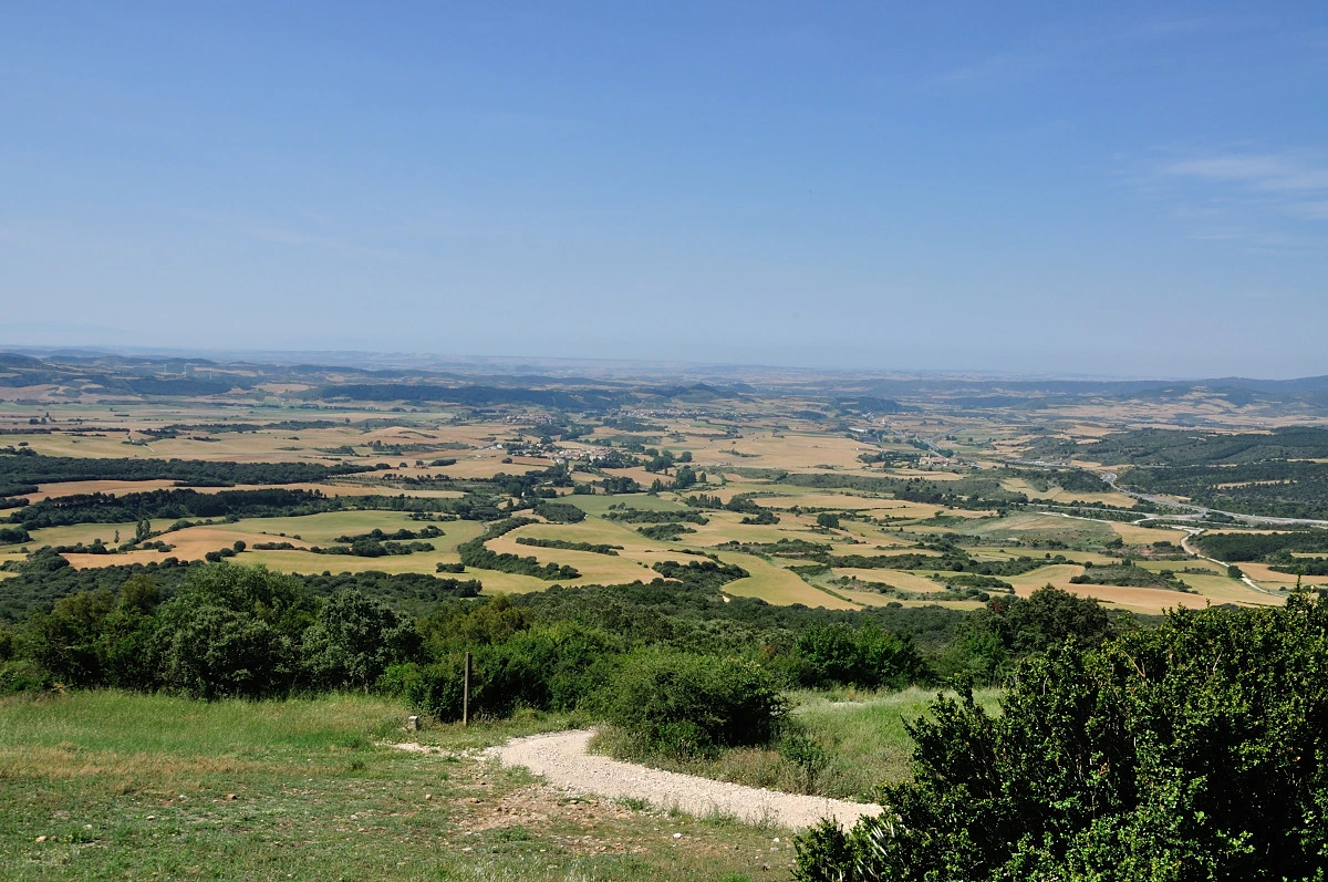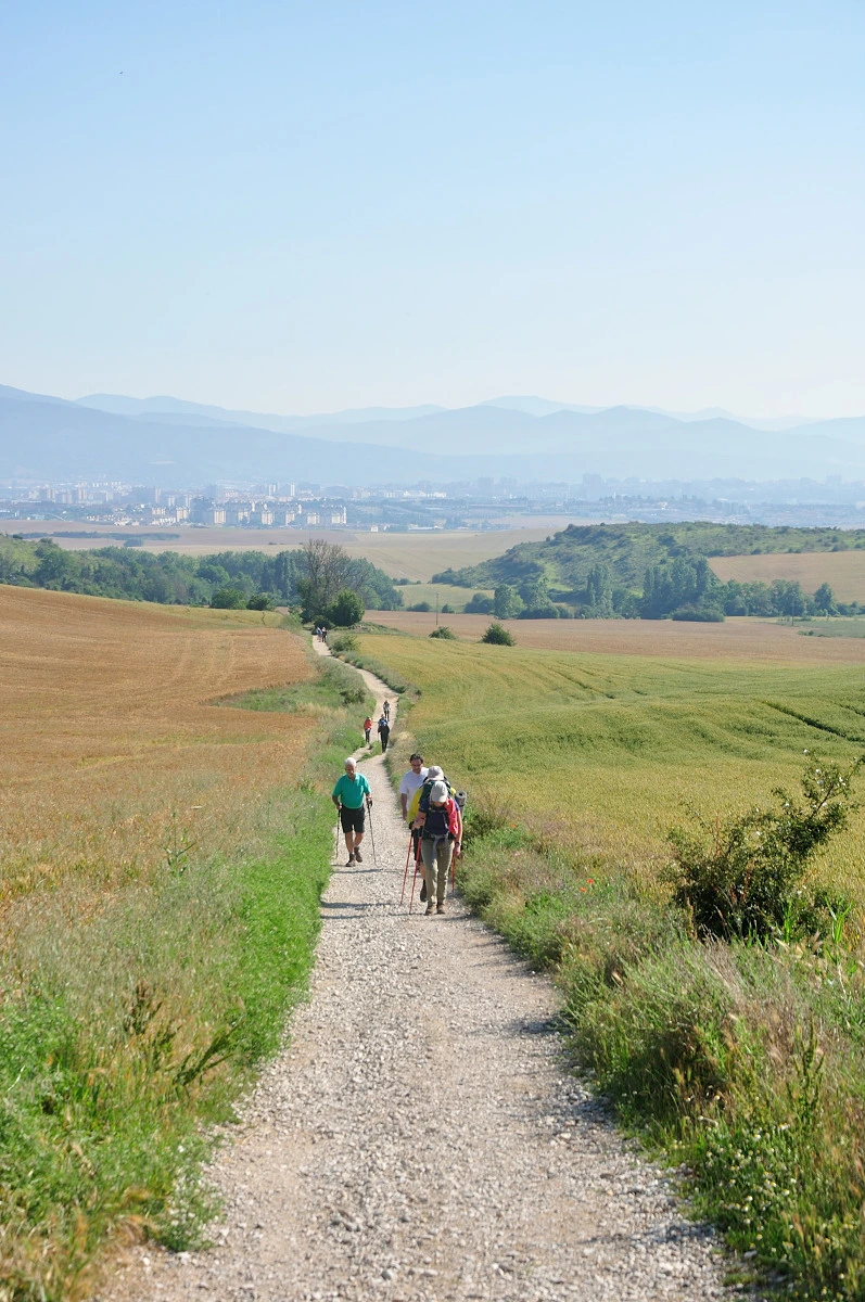 뒤를 돌아보니 저 멀리 팜플로나 시내가 보이고, 한 줄기 선처럼 이어진 길위로 순례자들이 점점히 박혀 있다. 가까워 보이지만 점처럼 보이는 순례자들은 우리와 꽤 멀리 떨어져 있는 것이다. 그런대도 거리감이 없어 가깝게 걷는 순례자처럼 느껴졌다.