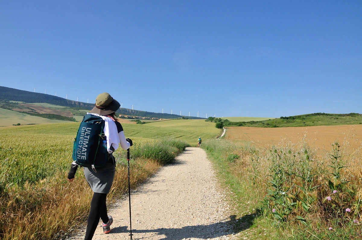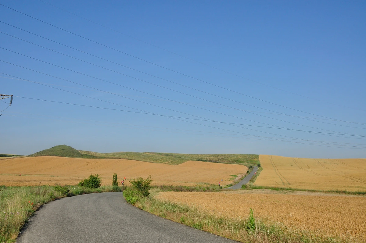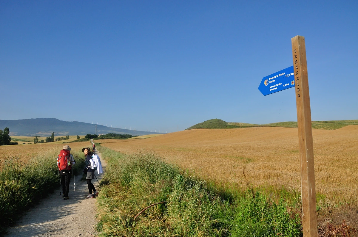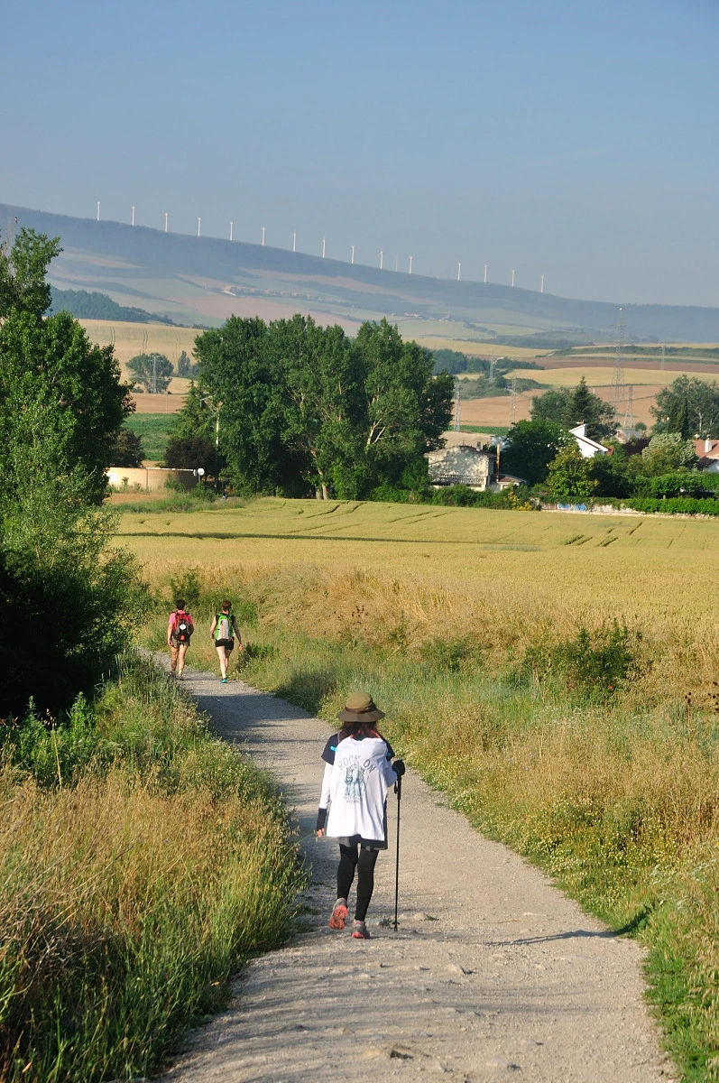 5km 이상 걸어서 팜플로나를 완전히 벗어났을때 여유를 가질 수 있었다. 양옆에 펼쳐진 밀인지 보리인지 알 수 없는 밭의 풍경이 끝없이 이어지고 그사이 길을 따라 갈림길없이 뻗어있어 일행 걱정을 덜 수 있었기 때문이다. 낮은 언덕이 연이어 보이고, 그사이에 가끔 서있는 나무가 신기해 보일 정도로 한국에서보는 시골 풍경의 모습과는 달랐다.