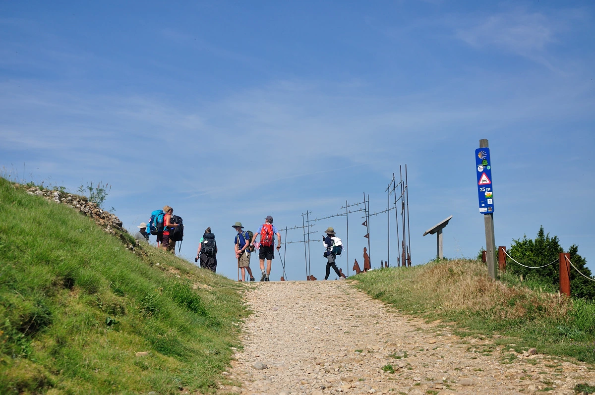 바로 코앞이 용서의 언덕(Alto de Perdon) 꼭대기이다. 왜 용서의 언덕이라는 말이 있는지는 알 수 없다. 지나가던 순례자들이 힘든 언덕을 올라오면서 복받쳐 울면서 스스로에게 용서를 했던건 아닐지... 그리고 순례길을 다녀온 사람들이라면 이곳에 있는 줄지어 걸어가는 순례자의 조형물 사진을 가지고 있다. 나는 이제서야 그 모습을 보았다. 늦었지만 지금이라도 와서 내 눈으로 똑바로 볼 수 있음에 감사하고 있다.