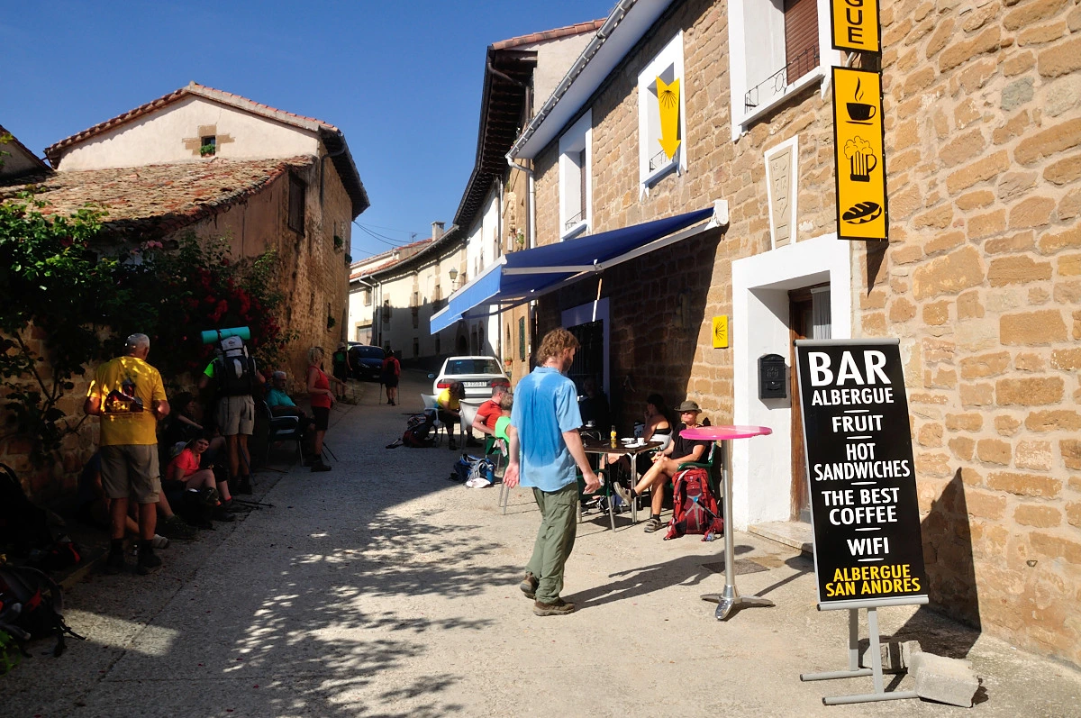 언덕 아래 Zariquiegui라는 작은 마을에 다다랐다. 점점 뜨거워지는 태양을 벗어나 시원한 곳에서 쉬고 싶었기 때문이다. Bar에 도착했어도 뒤쳐진 일행을 기다리며 길변에 배낭을 내리고 기다리며 Bar에서 마실거리를 주문했다. 이럴때는 물보다는 시원한 맥주(cerveza)가 최고이다. 한 잔에 1.5유로 정도 하는데 이곳은 콜라보다 싼것이 맥주이다. 맥주로 목을 축이면서 그늘에 앉아 있으면 배낭이 품고 있었던 열기도 다시 빠져나가 시원해진다. 이 뜨거운 초여름의 기온을 언제까지 느껴야 할지 걱정아닌 걱정이 되기 시작했다.