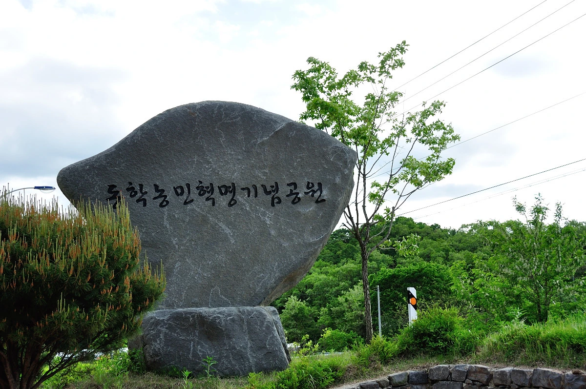 첫 일정의 마지막 장소는 '동학기념공원'이다. 기념조형물과 언덕주변을 산책할 수 있도록 데크길이 조성되 공원이다. 동학운동이 전개되면서 관군에 맞서 마지막까지 저항하던 곳이 보은이라고 한다. 그래서 이곳에 커다란 동학기념공원이 조성된 듯 하다.