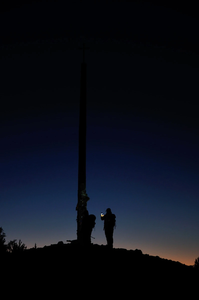 차가운 바람이 부는 언덕에서 얼마의 시간을 보내니 순례자들 한 두명이 오기 시작했다. 그리고 모두가 그앞에서 바로 지나가지 않고 철십자가에 기도를 하던가 바라보던가 사진을 찍는다.