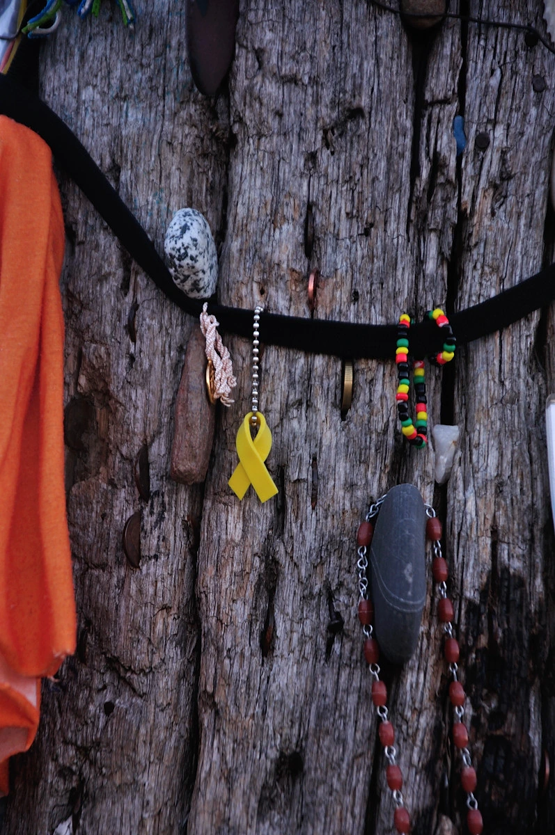 눈에 익은 세월호 리본도 보인다. 나름에 사연을 여기에다 묻어두려는듯 한참을 서성이고 있다. 나는 그저 돌에 새겨진 글귀, 사진, 십자가에 걸린 목걸이들을 찬찬히 내려다 보았다.