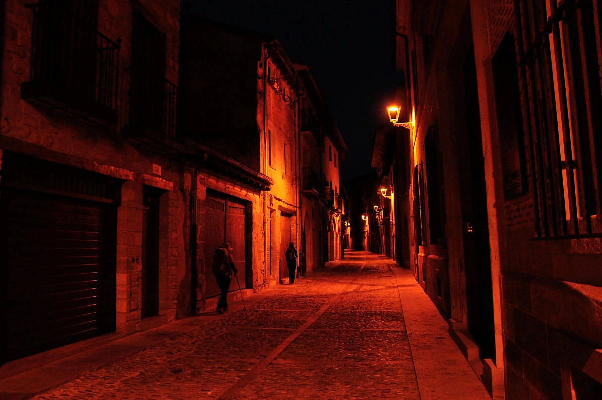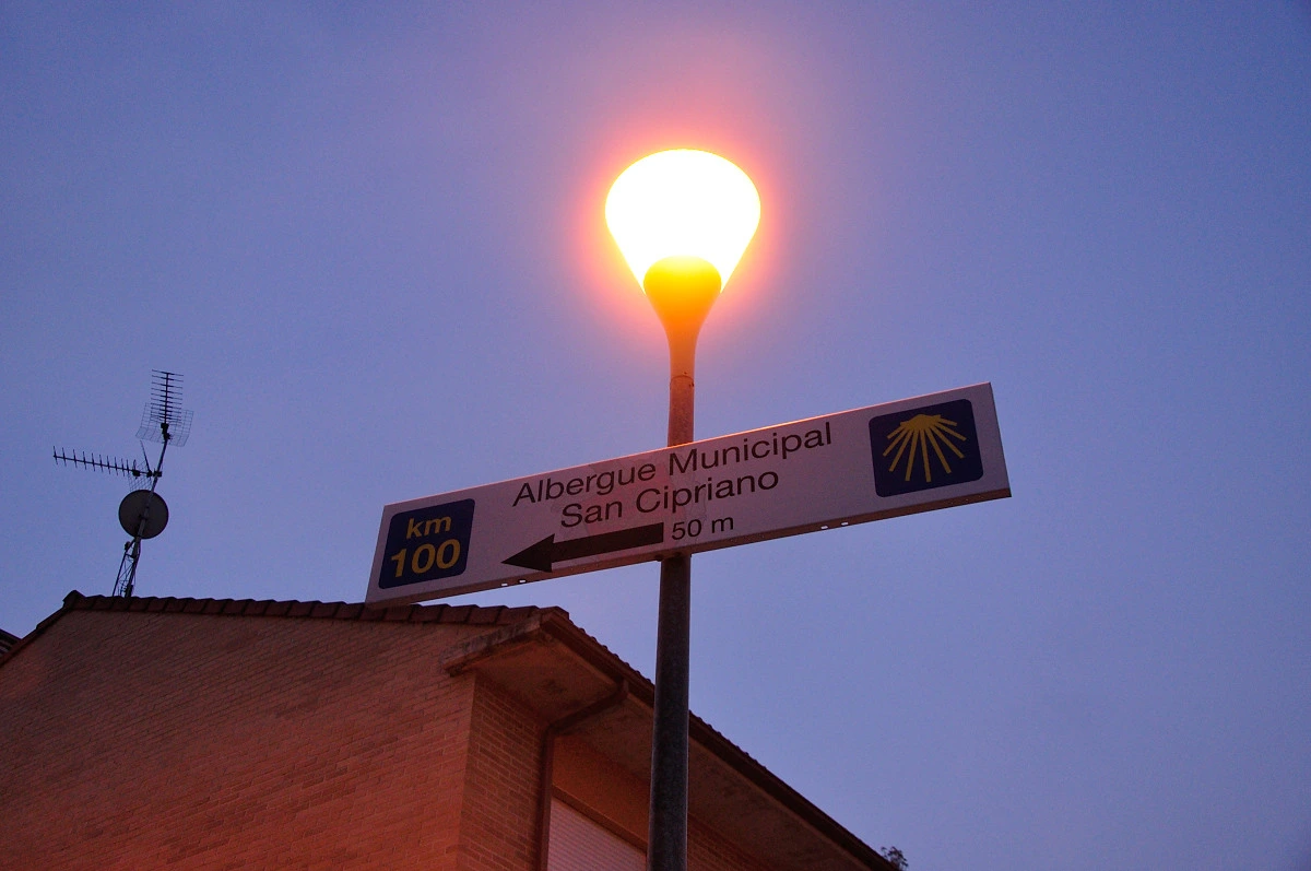 오늘도 6시가 조금 넘어서 알베르게를 나섰다. 시원한 공기를 마시면서 다니는것은 좋지만 사진을 찍으려는 나한테는 그닥 좋지 않은 상황이다.빛이 부족하여 사진으로 무엇인가 남기기에 좋은 조건이 아니기 때문이다. 삼각대마저 없으니 더욱 그렇다. 마을을 가로질러 도로변을 따라가다 표시를 잃어버려 조금 헤매였다. 새벽이라도 완연하게 밝은 날이 아니기 때문에 자칫 노란색 화살표가 안보이는 경우가 발생하는데 오늘이 그런날이다. 뒤돌아 내려가서 주변을 살핀후에야 횡단보도 건너편에서 노란색화살표를 찾았다.