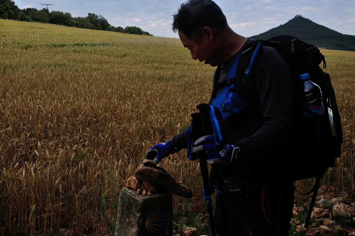 순례길을 걷던 수많은 사람들이 나름에 흔적을 남겨놓고 간다. 표시석위헤 신발을 올려놓기도 하고, 어느곳에 돌탑을 쌓아놓기도 한다. 아니며 어제처럼 철조망에 십자가를 만들거나 순례길위에 다음에 올 순례자를 위해 돌을 가지런히 정렬하여 화살표를 만들어 놓기도 한다. 알게 모르게 여기에는 순례자들의 이야기가 베어 있다. 우리도 그냥 지나갈 수 없어 돌을 하나 올려놓을때도 있다. 나는 북쪽길에서 십자가와 사랑이라는 단어를 만들어 철조망에 달아 놓은 적도 있었다. 나름 순례길에 내 이야기를 걸어놓은 것이다. 그렇기에 다시 찾아가고싶은 마음도 생길 것이다.
