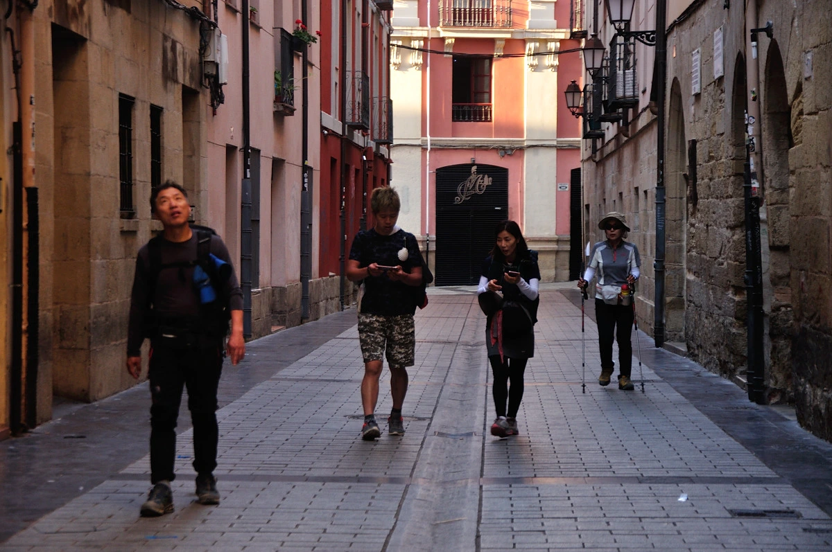 나로써는 간만에 좋은 아침을 맞이했다. 밝은 날에 나오니 로그로뇨의 아침 풍경을 사진에 담기에 충분했기 때문이다. 조금이라도 빛이 부족하면 사진찍기가 어렵다. 플래쉬를 사용하면 되지만 자연스러운 맛이 사진에 보이지 않기때문에 플래시는 되도록 사용하지 않는다. 일행들은 사진을 찍고 담소를 나누면서 걸어오지만 나는 그렇지 못하다. 이들을 이끄는 리더이자 가이드 역할을 해야하기 때문에 골목길이 많은 도심에서는 더욱 신경을 곤두세워 길을 찾는다. 자칫 실수로 화살표나 이정표를 잘못 해석하면 엉뚱한 길로 접어들기 때문이다. 앞으로는 길을 찾고 뒤돌아보면서 사람들이 잘 따라오는지 수시로 체크하면서 걸어야 했다. 내가 이렇게 신경쓰고 있다는 것을 알고는 있는지 ....