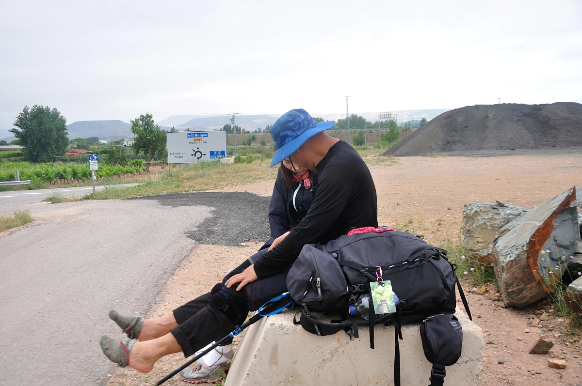 Ventosa를 지나면서 부터 다른 마을이 보이지 않았다. 결국 10km 가까운 거리를 그냥 걸어야만 했다. Najera 마을 초입에 다다르니 너른 도로와 함께 차량소통이 많아져 나름 큰 도시에 왔음을 실감했다. 그러는 사이에 일행들은 무척이나 힘들어했다. 쪼리신은 뒤쳐진 상태로 자기 속도대로 오고 있었고, 나와 테스, 바다바람 3명이서 같이 걷고 있었던 터였다. Bar가 보이지 않아 그냥 도로변 시멘트 블럭에 주저앉아 쉬기로 했다. 다들 챙겨오거나 비상식량이 없는 터라 내가 가져왔던 Maria비스켓을 꺼내어 나눠주었다. 항상 비상용 먹을거리를 챙겨야 한다고는 했지만 배낭 무게에 민감하게 생각하는 사람들에게는 별 의미없는 말일 수도 있다. 하지만 자신이 중요하다고 생각되는것은 들고다니는 것을보며 놀랍기도 했다. 책이나 잼이든 통이던...