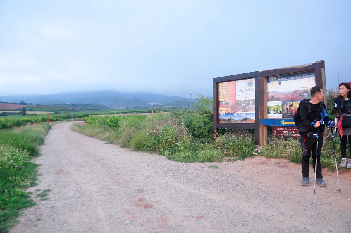 Sote 이정표를 지나면서 또다시 갈림길이 나온다. 하나는 Ventosa마을 거쳐가고 오른쪽 도로따라 가는 길은 가로질러 가는 단축길이다. 어디를 가더라도 상관없지만, 우리는 휴식을 취할 겸 Ventosa로 향했다. 이른 아침이지만 순례자들은 제법 앞뒤로 보이고 있다. 그중에 시선을 끄는 두 여성이 있었다. 딸과 엄마인 듯 한데 나이든 여성의 걸음걸이가 시원찮다. 무척이나 힘들어하고 다리를 절룩거리는것 같다. 더군다나 큰 배낭까지 짊어지고 걷고 있다. 동키서비스라는 것이 있는데 이를 활용하지 않는가 보다. 그런데도 옆에 젊은 여성은 묵묵히 지켜보며 옆자리를 지켜주고 있다.
