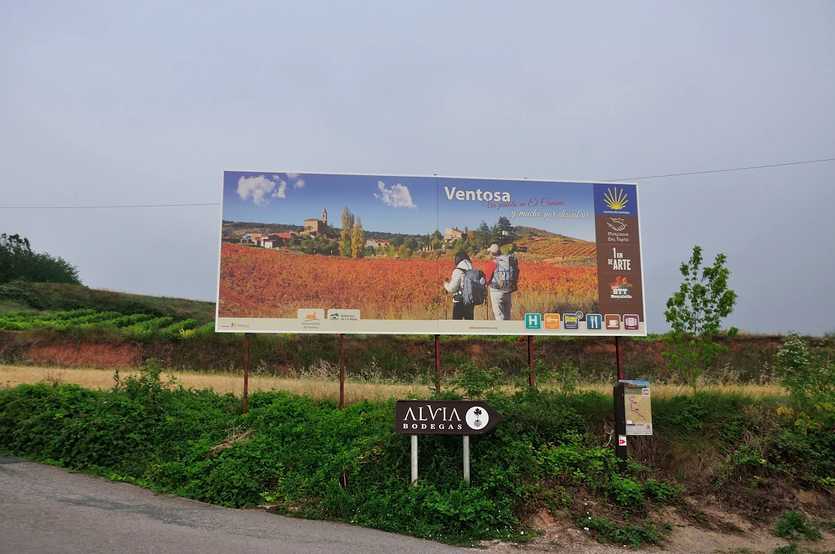 Ventosa라는 마을은 작은데 갈림길마을입구부터 마을을거쳐 다시 합류하는 지점까지 ' 1 Km del Arte' 라고 별도의 표시를 해두고 있다. Ventosa라는 마을은 로마시대때 부터 무역이나 상거래 하던 사람들이 왕래하던 자리에 서 있는 도시여서 나름 부흥했던 도시였다고 한다. 그리고 이곳 거주민와 아티스트가 협조하여 자연환경을 아트로 표현하는 작업을 하기위해 순례길위 1km 구간을 지정하여 작업했다고 한다. 별다른 모습이 보이지는 않지만 주변 그대로와 색다른 이정표만 보는것만으로도 그리고 이를 이해하고 보고 걷는 것만으로도 충분히 순례자들에게 어필할 수 있다. 그저 편한게 지나쳐 가는 순례자라면 이곳의 의미와 모습을 놓친 순례길을 걷고 있는 것이다.