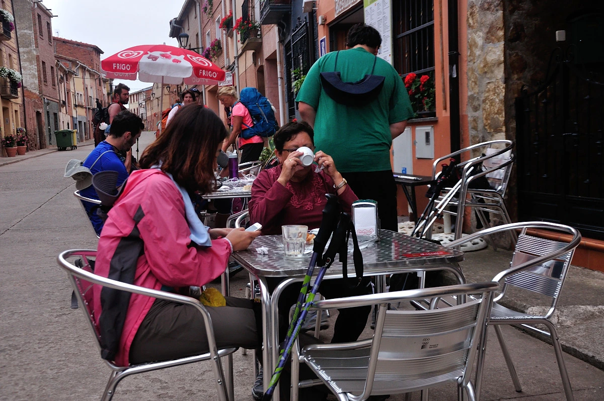 Azofra에 다다르니 대부분의 순례자들은 첫번째 보이는 Bar에 들여 아침식사 또는 커피를 마시며 휴식을 취하고 있다. 시내 안쪽으로 들어가면 더 많은 Bar가 있는데도 꼭 약속이라도 한듯이 첫번째 보이는 Bar에 모두 모여 있다. 이제는 얼굴이 익숙한 외국인 순레자도 제법 보인다.
