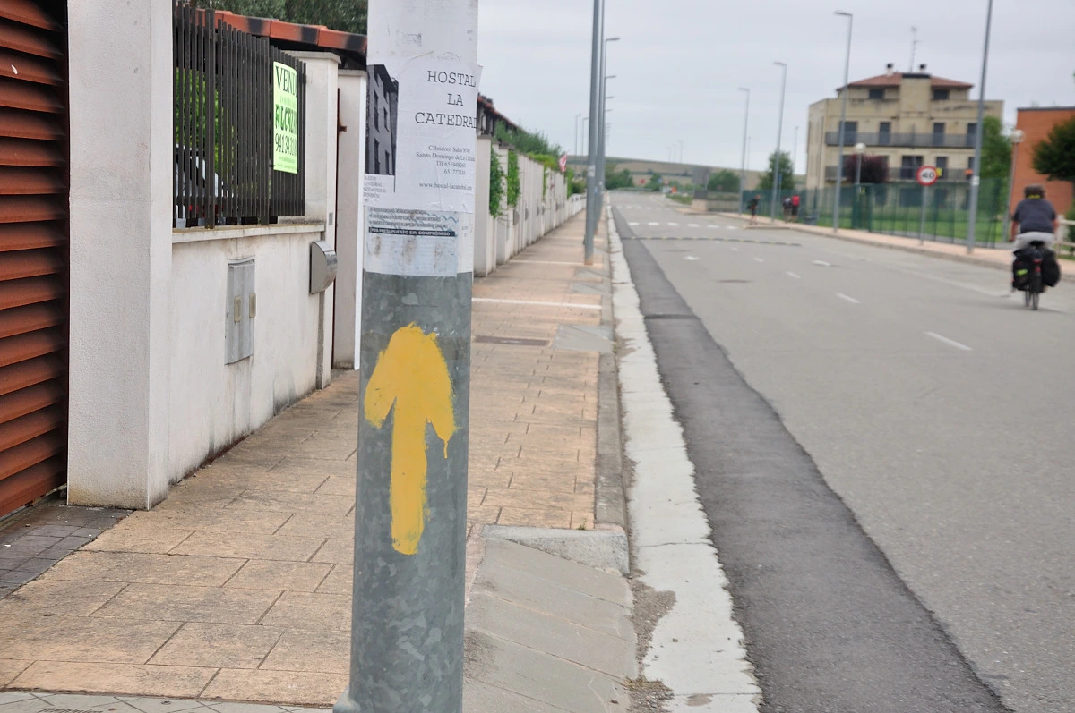Najera 시내를 벗어나 Calzada로 가기위해서는 시내구간을 지나야 하는데 표시대로 가면 시내를 빙 돌아 성당을 거쳐 가도록 되어 있다. 전날 시내구경을 한 일행들은 이렇게 걷지 않아도 질러서 가도 된다고 생각하고 있었나보다. 시내구경하면서 돌아보았기 때문에... 하지만 나는 가능하면 코스대로 가는것을 바랬고 그렇게 진행자로써 해왔기에 오늘도 순례길 노란색 화살표따라 빙둘러 가고자했다. 쪼리신은 굳이 왜 그렇게 하냐고 아침부터 시큰둥한 표정이다. 나또한 전날 시내관광을 했지만 그렇다고 해서 짧은 길을 찾으려고 다닌것은 아니다. 시내관광은 시내관광일뿐이다. 걸을때는 순례길따라 걷는것이 우선이라고 생각한다. 두번째 방문이였다면 다른 길로 접어 들었을 수도 있을것이다.