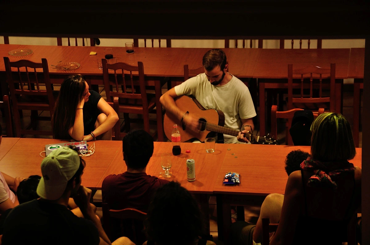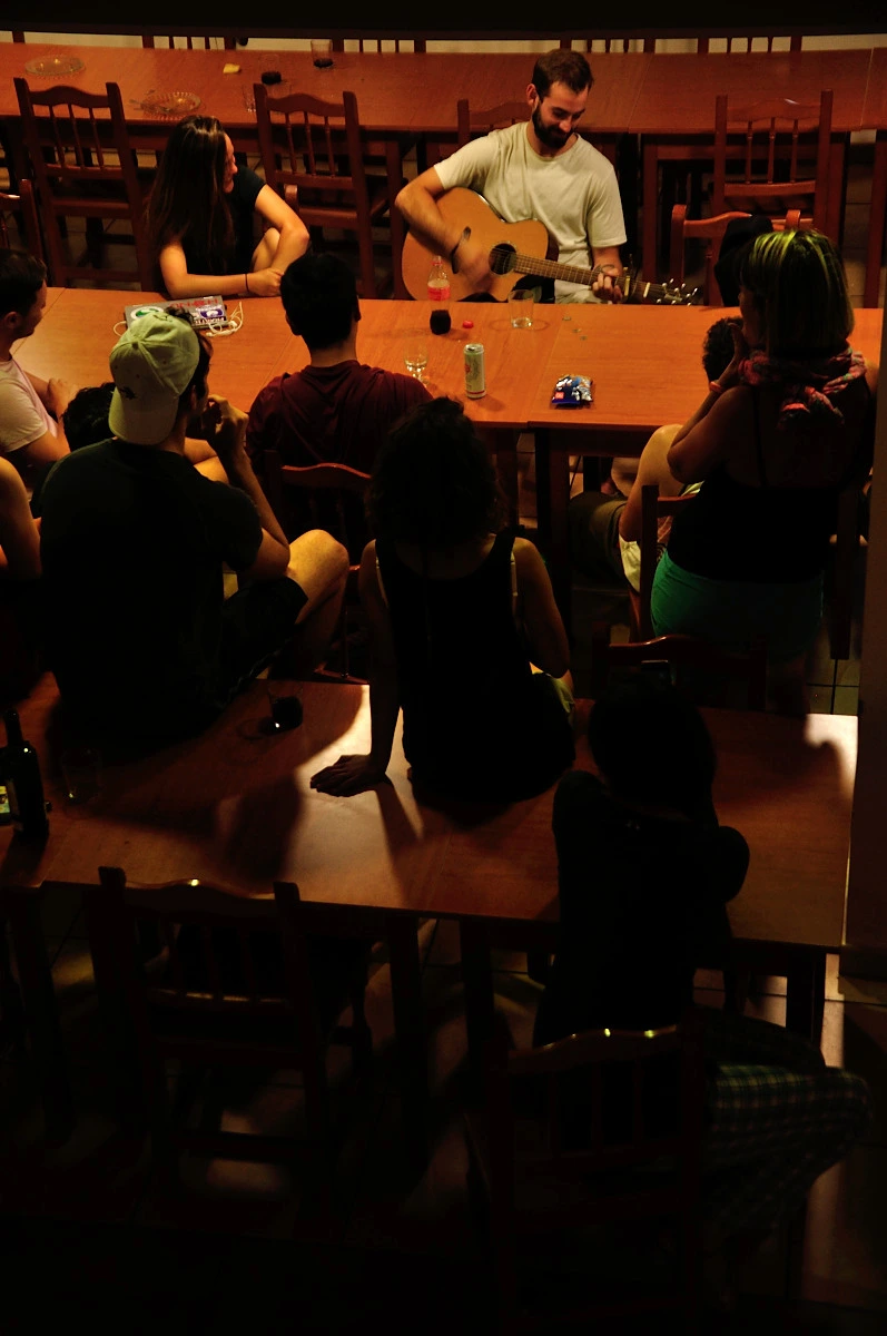 간만에 노트북을 펼치고 순례길에서 찍었던 사진들을 정리하고 글을 쓰기위해 휴대폰에 기록해 두었던 메모를 펼쳐보며 침대에 누웠다. 어느 순간 거실에서 기타치며 노래부르는 소리가 들렸다. 한 곡 끝나면 금방 멈추겠지했는데 2번 째 노래 울려퍼지기 시작했다. 무엇에 이끌린것처럼 카메라를 들고 침실이 있는 2층 밖에서 아래층이 내려다보이는 난간옆에 덜썩 주저앉아 노래를 듣기 시작했다. 잠시 후 다른 순례자들이 침실에서 나와 나처럼 2층 난간에 자리 잡고 빙 둘러 앉았다. 노래가 끝날때마다 박수가 울려퍼졌고 점점 사람들이 늘어나기 시작했다. 드디어 3번째 노래가 시작되었다. 팝송이지만 가사는 이해할 수 없었지만 노래선율과 노래부르는 사람의 음색은 무척이나 좋았다. 바로 옆에서 듣는 라이브콘서트마냥 내몸이 들썩 거렸다. 점차 흥이 오른다. 3번째 노래가 끝나고 앵콜을 외쳤지만 더이상의 미니 공연은 이어지지 않았다. 가끔 공립알베르게에 있으면 생각지도 못한 경험을 하게된다. 작은 공연이나 파티같은 저녁식사, 아니면 와인파티가 열리기도 한다. 사립알베르게는 개인적인 휴식을 원하는 사람이 많아 이런 분위기를 경험하기 쉽지 않다. 그래서 나는 공립알베르게를 우선시하며 가려고 한다. 아쉬운점이 있다면, 부족한 영어실력때문에 무언가 공유하는 마음으로 얘기나누고 싶지만 그냥 지나쳐 버리기 일쑤이다. 북쪽길을 걸었을때는 외국인 친구를 많이 만났었다. 한국인도 없었고 봐주어야할 일행도 없었으니까. 하지만 지금은 그렇지 않아서 일지도... 나와 함께하는 동행자들을 생각해야하니까.. . .