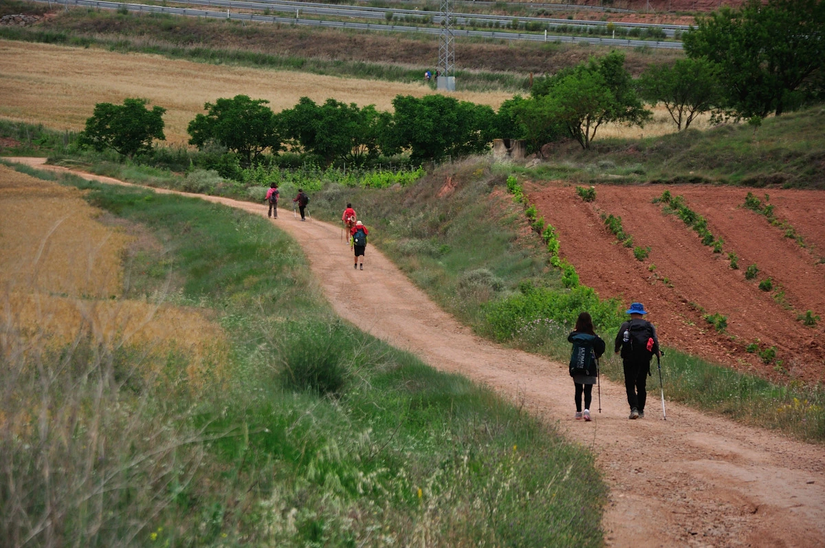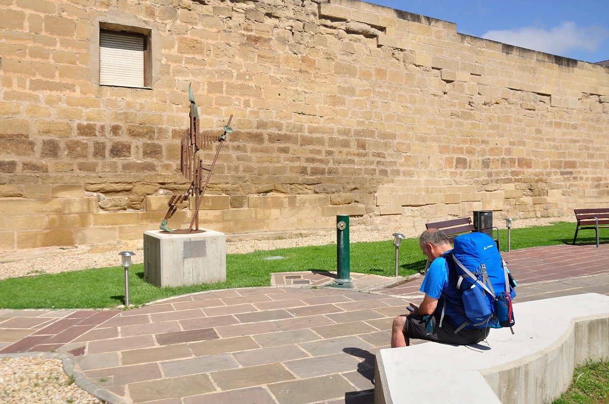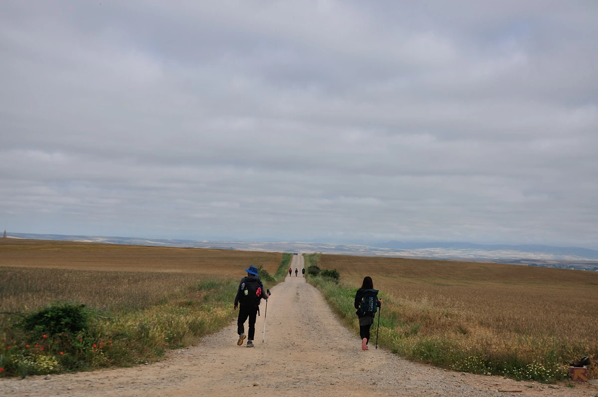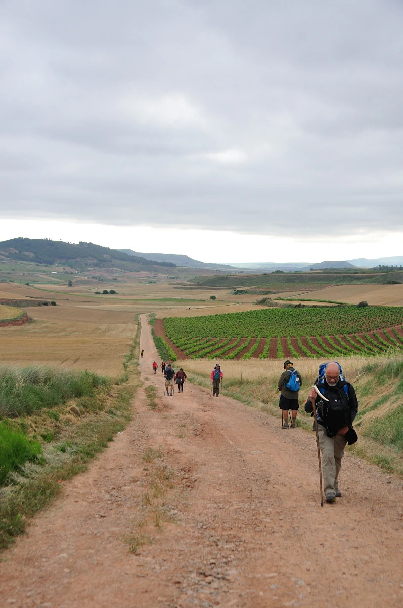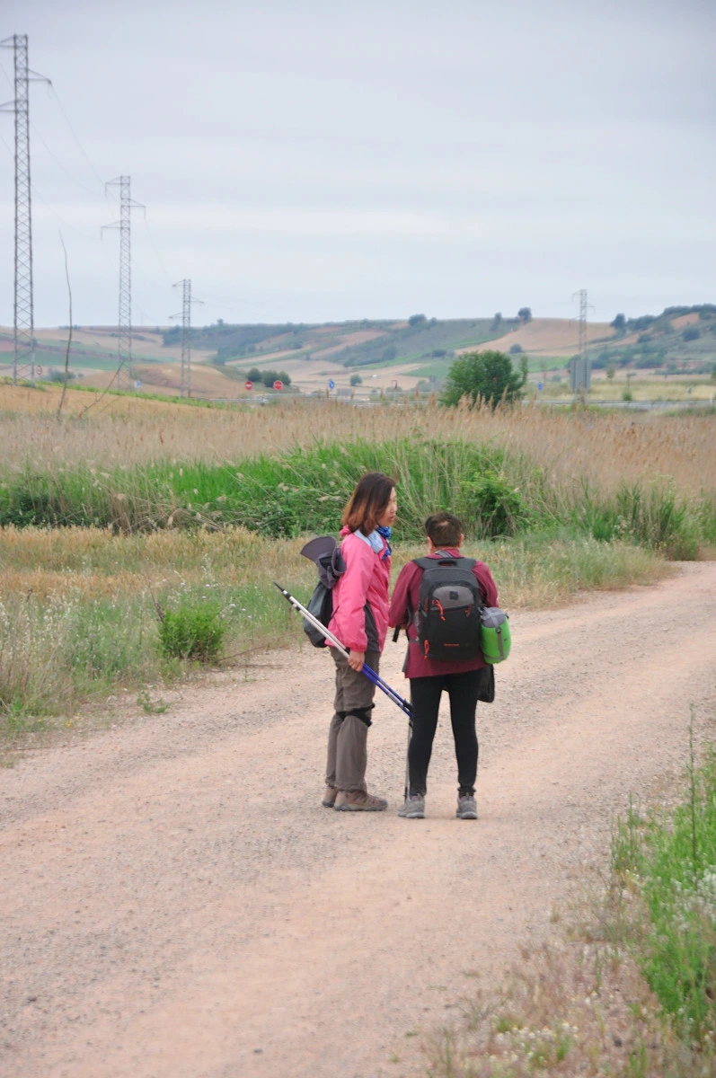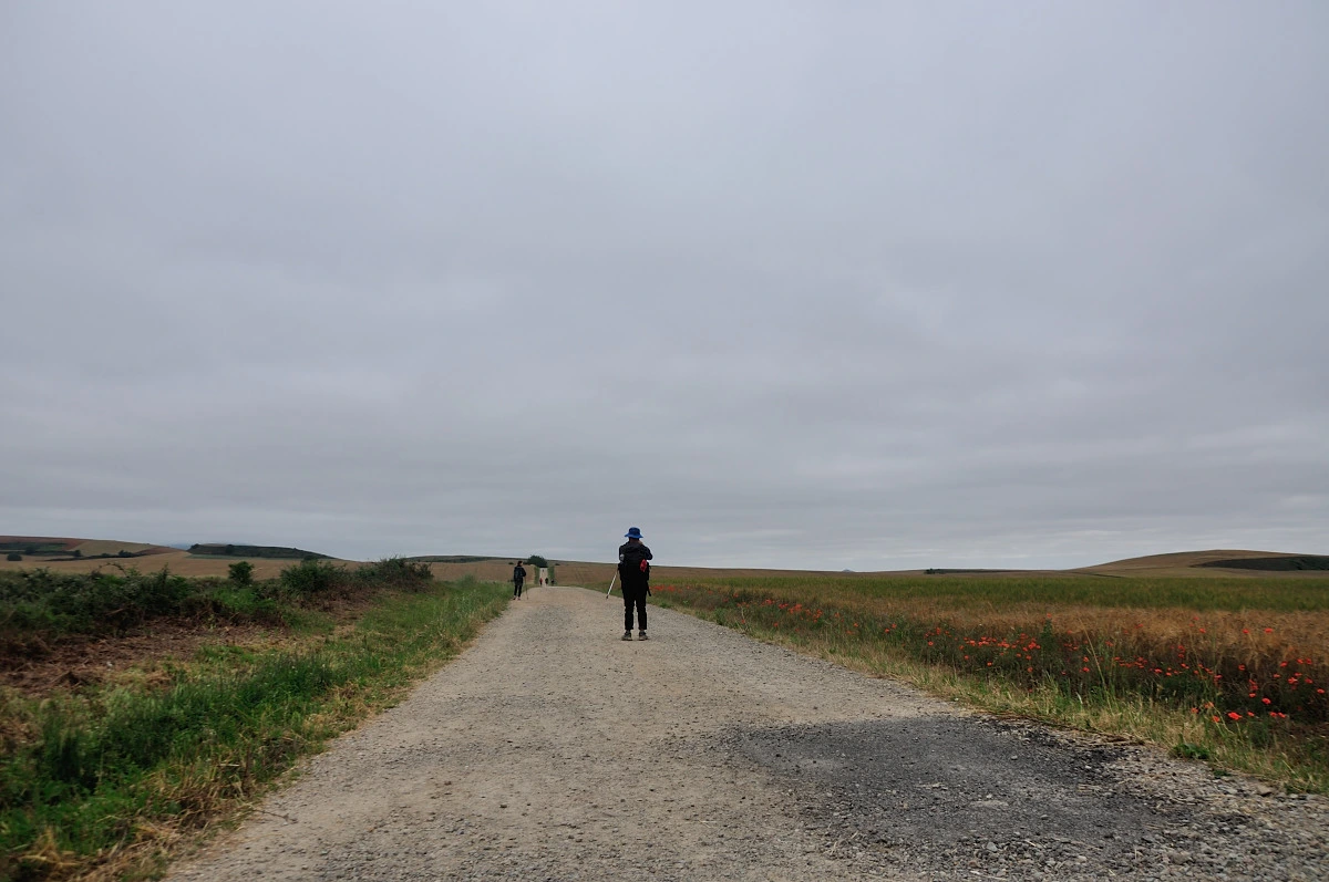 이제 메세타평원이 가까워져서 그런지 숲길이라기보다 너른 들판을 걷는 비포장길이 대부분이다. 건조하니 흙먼지가 날리고 가로수가 거의 없어 그늘을 찾는것이 어렵다. 그렇지만 찬찬히 힘들지 않게 마음편하게 걸을 수 있는 길이다. 그러다 보니 다양한 순례자들을 보게 된다. 다리가 불편해 보이는 사람도 있고, 아파하는 표정을 지으면서도 굳굳하게 걷는 사람들도 있다. 또는 배낭을 메는것이 불편한지 캐리어처럼 끌고 다니는 사람들도 제법 있다. 이렇게 불편함을 무릎쓰고 걷는 이유가 무얼지 또다시 궁금함이 밀려왔다. 힘들면 쉬어가도 될텐데 그불편함을 이겨내고, 약바르고, 비타민제 먹어가면서 걷는다.