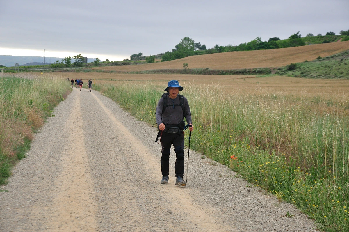 언덕을 넘어서니 낮은 구릉이 연이어진 들판이 펼쳐진다. 이제는 포도밭과 밀밭이 어우러진 풍경이다. 누렇게 익은 황금빛과 햇빛을 머금어 푸르게 변한 포도밭이 대비를 이룬다. 어느때와 같이 쪼리신은 자기만에 속도대로 뒤에서 걷고 있고, 우리는 앞서서 걷고 있다. 게다가 또 한 명이 우리 일행에 포함되었다. 뉴질랜드에서 살고 있다는 한국인 여성이였는데, 전에 Zubiri에서 만났던 적이 있는 분이였다. 무척이나 걷는것을 힘들어 했었던 분이였는데 포기하지 않고 지금까지 걷고 있고 우리와 동행이 되었다. 때로는 통역역할을 해주어 좀더 편하게 순례길에 집중할 수 있었다.