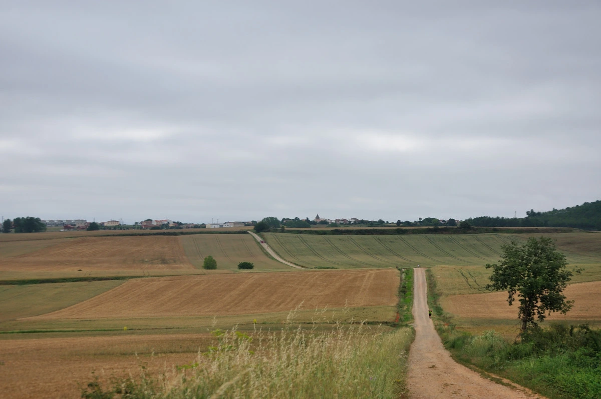Calzada에 다가 갈수록 점차 해발고도는 높아졌고 700미터를 훌쩍 넘는 언덕을 넘어야 한다. 하지만 평탄하고 오르막 경사가 심하지 않아 내가 이렇게 높게 올라왔다는것을 실감할 수 없다. 오르막이라지만 너무나 쉽게 넘어가는 길이다. 나름 지대가 높다보니 대관령을 넘을때처럼 변화하는 날씨를 만난다. 오르막길을 올라갈때만 해도 구름낀 날씨였는데 능선너머 내리막에 들어서니 해가떠있는 따가운 날씨로 바뀌었다. 높은 구릉위에서 점차 내려서니 길게 이어진 길이 끝없이 보였다. 그 위로 순례자들이 앞뒤로 촘촘히 붙어서 걸어가는 모습이 한눈에 보인다. 길게 이어진 사람들의 무리가 점처럼 보이다가 어느 사이에 선으로 보였다. 가까이에 보이는 도시가 이제는 꽤나 멀리 있다는것을 경험으로 알고 있다.