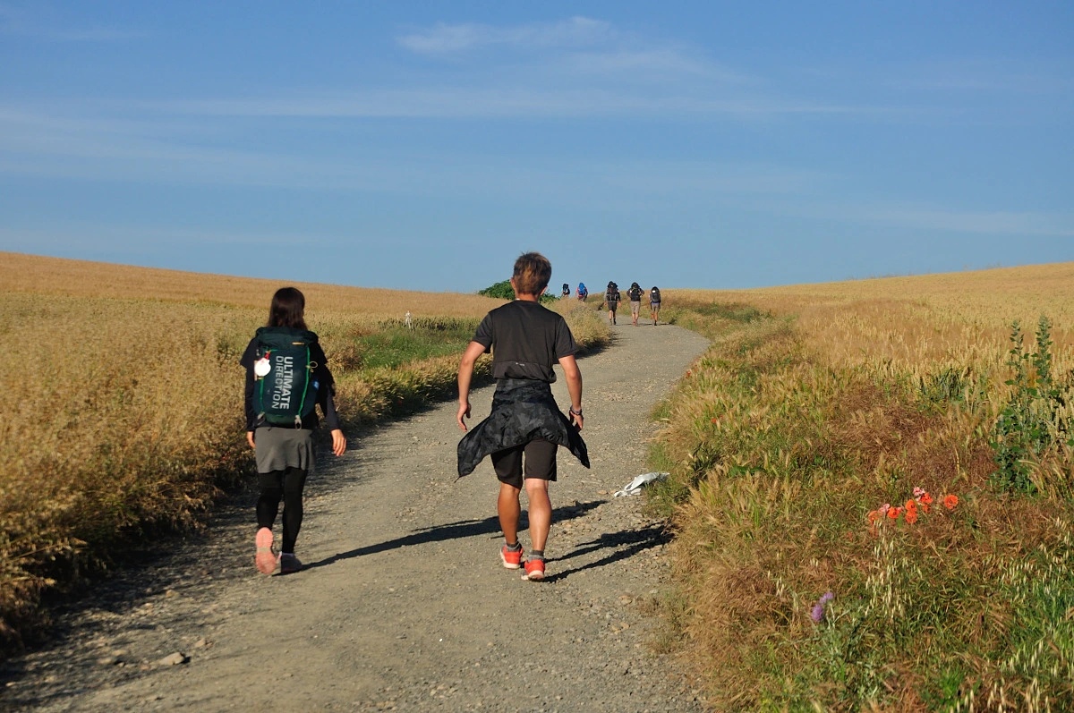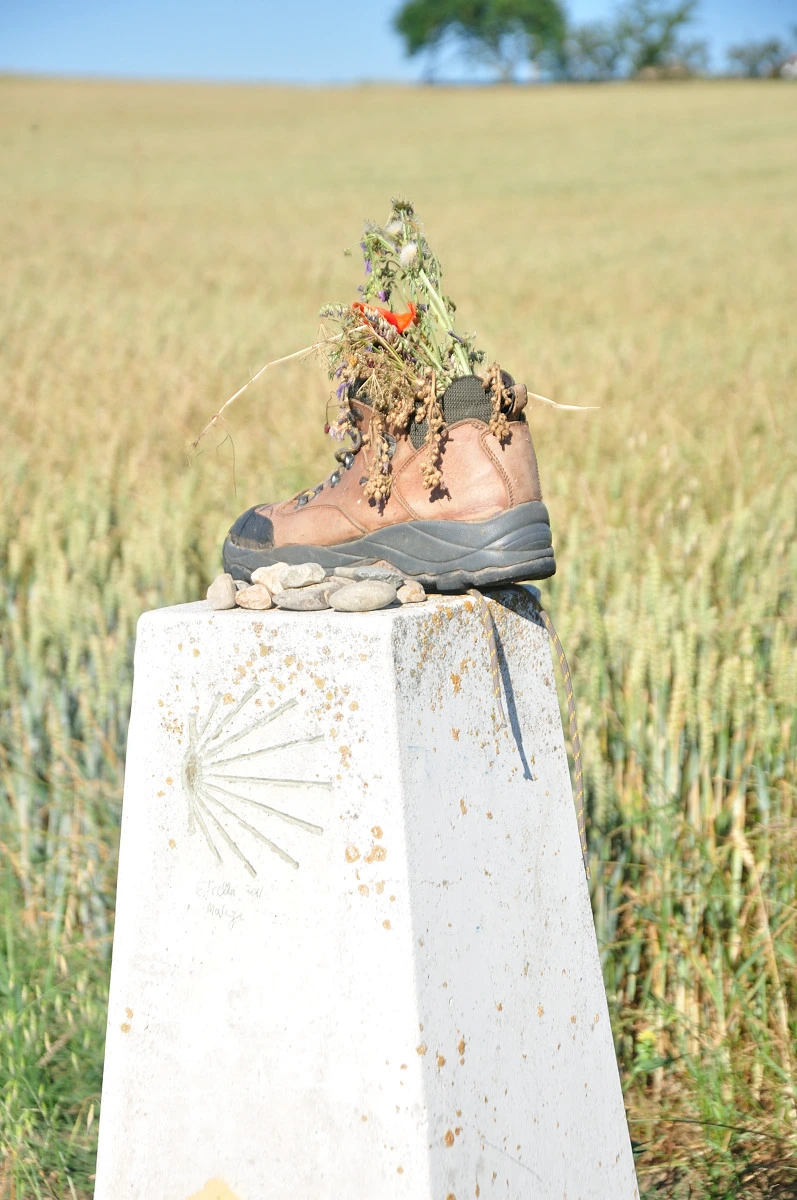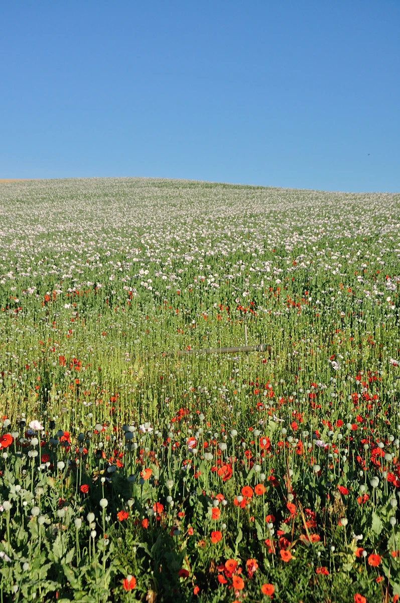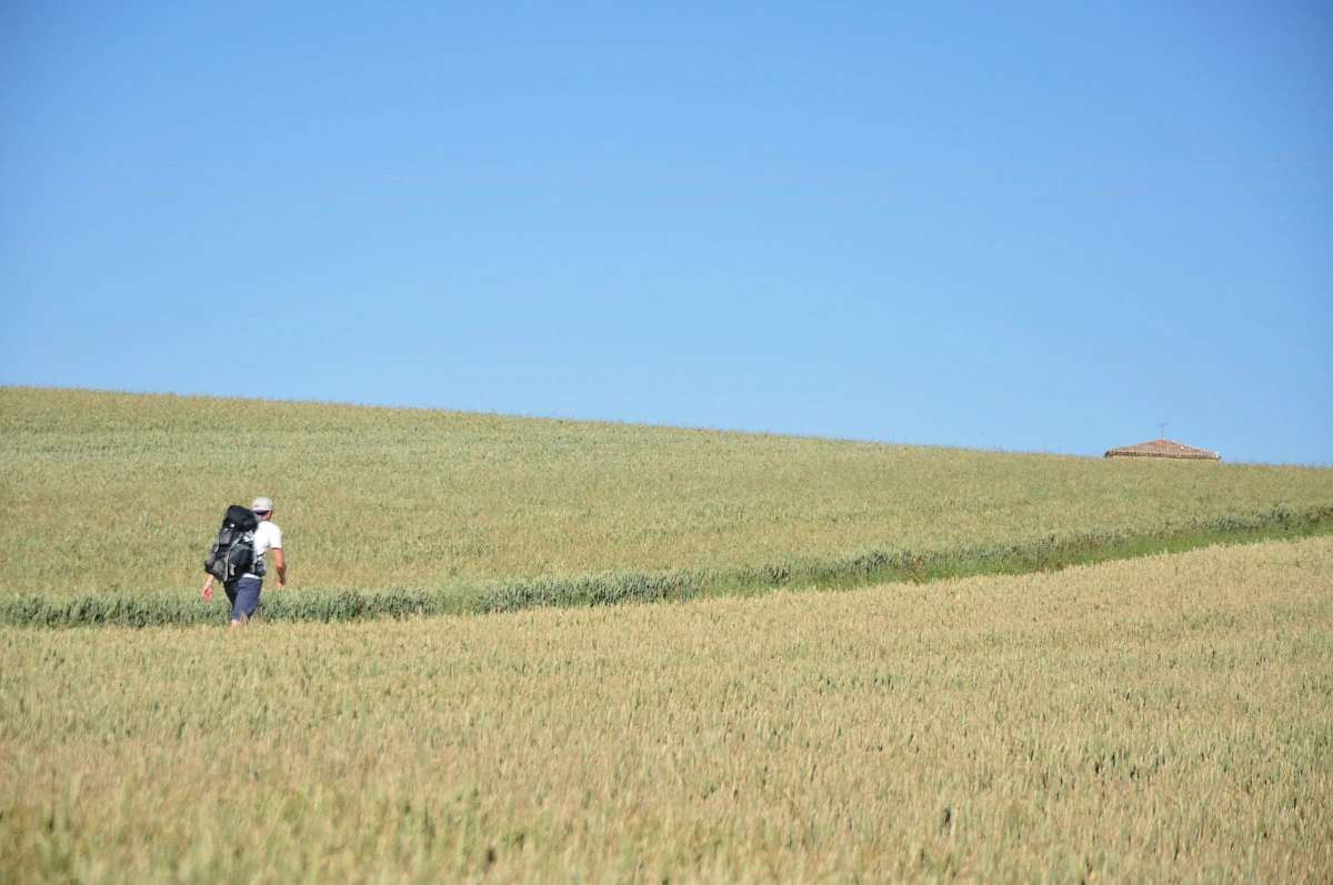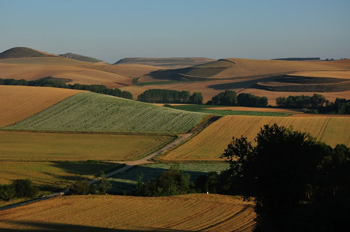 Belorado가는 길은 완만한 오르막이다. 내가 오르막길을 가고 있다는 것조차 느낄 수 없을 만큼 완만하고 평이한 길이다. 아직 메세타 평원에 들어서지는 않았지만 평원처럼 넓은 구릉이 계속되는 길이다. 그곳에 무엇이 자라고 있는지가 땅의 색깔을 결정한다. 밀밭이 남은 곳에는 옅은 갈색빛이며, 양귀비가 자라는 곳에는 하얀점과 붉은점이 가득한 붉은빛이 감돈다. 그리고 어느곳은 푸른빛이 감돈다. 멀리서 보면 작은 천을 짜깁기한 식탁보를 펼쳐 놓은 듯 하다.