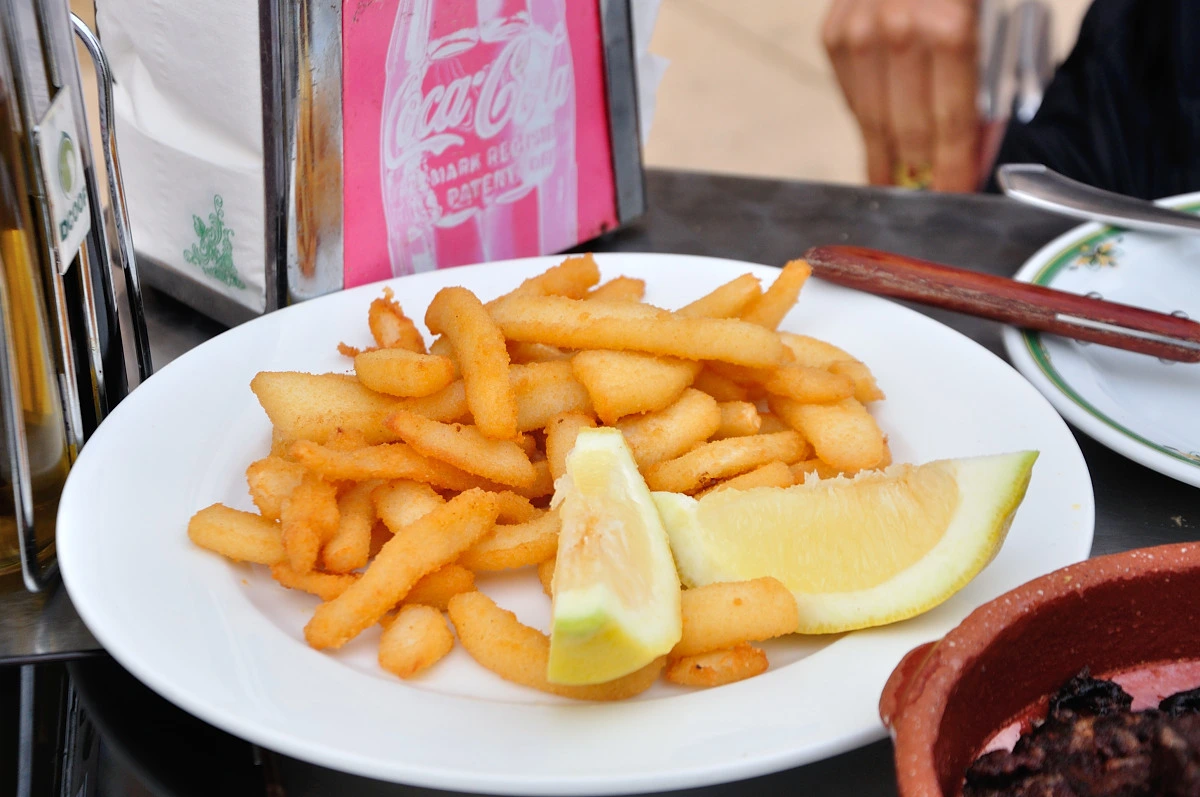 문을 연 식당에서 이제껏 보지 못했던 음식들을 주문했다. 순대비슷한것과 오징어 튀김... 이른 아침이지만 기름지고 따스한 음식이 너무나 마음에 들었다. 단숨에 둘이서 큰 접시 2개를 비웠다. 그리고 쌀쌀한 바람이 부는 거리밖 의자에 앉아 휴식을 취했다. 이렇게 여유로울 수가...