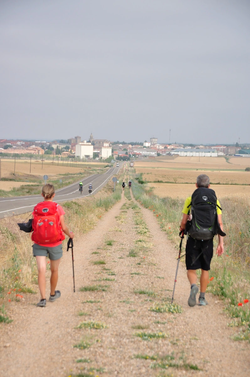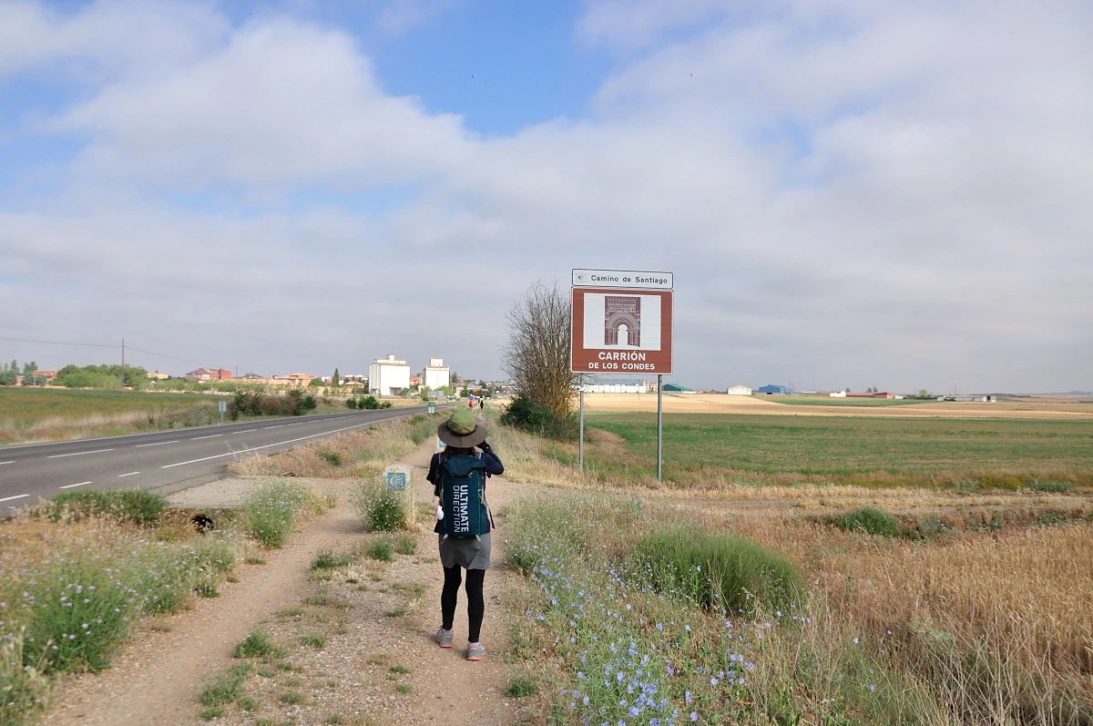 P-980도로를 따라 언덕인듯 언덕아닌, 언덕같은 길을 올라서면 저 멀리 Carrion이 보인다. 아직까지 뒤따라오는 일행을 만나지 못하고 나와 테스님만 나란히 걸었다. 멀리서 바라본 Carrion은 꽤나 이국적이다. 낮은 건물에 높게 보이는 것은 성당의 종탑인데 곳곳에 보이는 것이 심상치 않다. 팔렌시아지방에서는 나름 중요한 도시로써 'Camino의 심장'이라 불리울 만큼 성당과 순례자를위한 병원이 있을 정도로 큰 도시였으며, 중세의 산 소일로 왕립 수도원에서는 까리온을 찾아오는 순례자에게 11월부터 4월까지는 한 개의 커다란 빵을 주었고 5월에서 10월까지는 반 개의 빵을 주었으며 성직자에게는 빵과 2개의 계란, 포도주 1/4병과 20레알의 돈을 줄 정도로 번성했다고 한다.