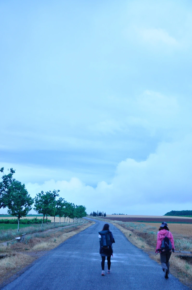 여지껏 운이 좋아 비를 만난적이 없었다. 비가 내려도 오전에 잠깐이거나 알베르게에 도착하고 쉬고 있을 저녁에 비가 내려 걷는데 수월했다. 북쪽길 걸을때에 비하면 천국에서 걷는 기분이랄까.... 어둑한 새벽에 구름이 낮게 드리워져 있어 음침하고 기온이 내려가 여름이라고 느껴지지 않았다. 다행인건 가로수 없는 순례길에 햇빛이 없어 걷기 좋다는 것...