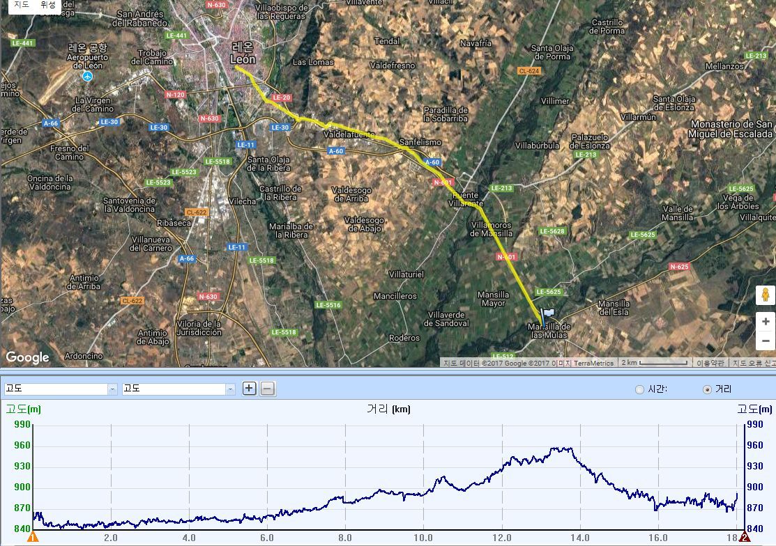 주요지점 Mansilla de las Mulas ~Puente villarente ~ Arcahueja ~ León