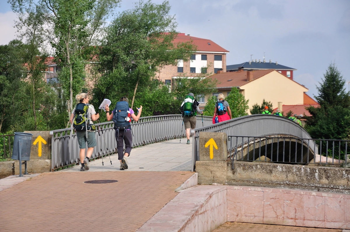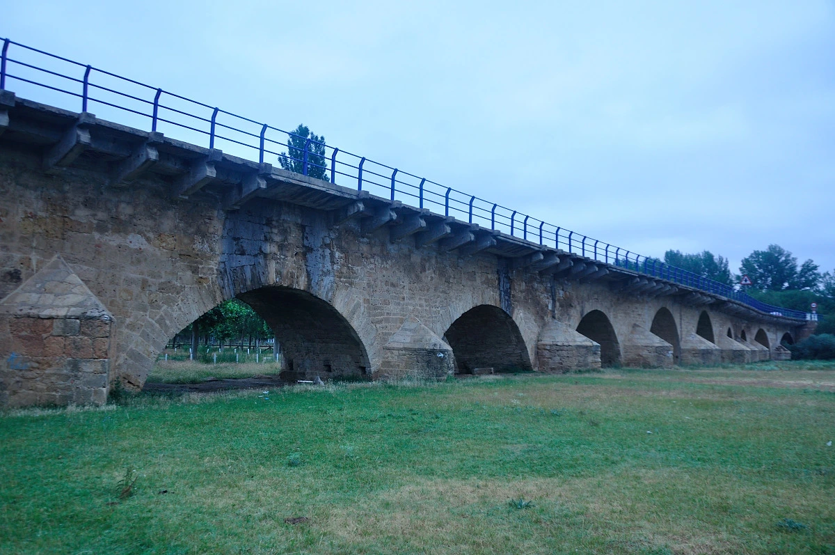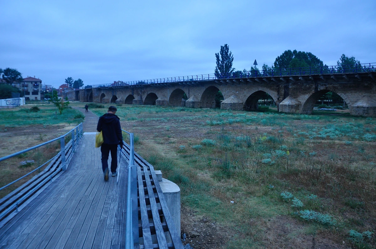 이른 아침부터 사람들이 부산하다. 흐린 하늘에 금새 비가 내릴것처럼 보인다. 얼마 걷지않아 Rio Porma앞에 기다란 다리를 만났다. 순례자가 다니는 길은 아니지만 보는것만으로도 조각품을 보는 것처럼 아름답다. 현대적인 재료와 고풍스런 석축이 만난 다리이다. 그 옆을 지나면서 다리의 풍경을 찍기위해 여기저기 돌아다녔다.