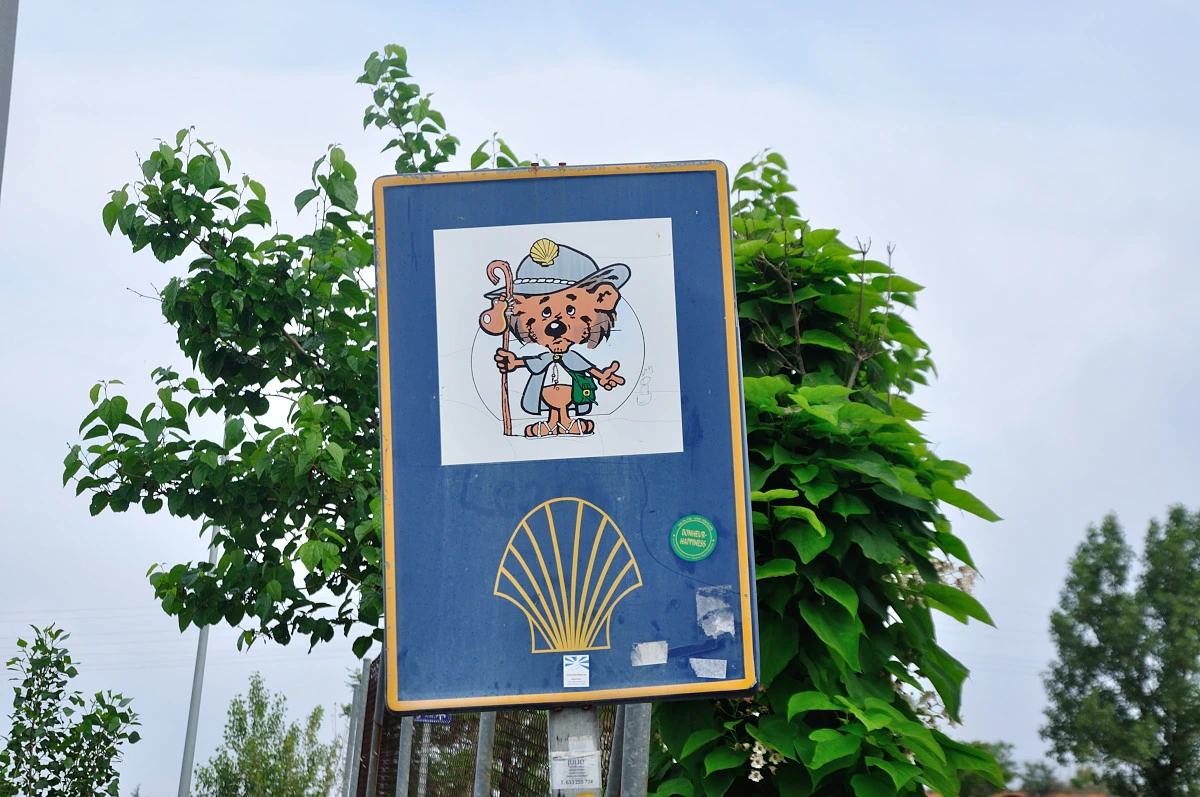 앞에 보이던 높은 언덕을 향해 걸었다. 그리고 금새 언덕머리에 올라섰다. 드디어 leon 시내가 눈앞에 펼쳐져 있다. leon y castilla 지방의 주도인 leon이자 이 지방의 끝자락이기도 하다. 무척이나 커 보이는 시내가 반갑기도 하다. 도심이 가까워지면서 높은 건물과 상가가 많이 보인다. 예전 가이드북에는 볼보대리점이 있는 근처 횡단보도를 건너 왼편으로 걸어가야 한다고 되어 있지만 지금은 트러스트 육교가 설치되어 있기때문에 노란 화살표따라 걸어가면 된다. 시간이 지나면서 순례길도 많이 변하여 순례자들을 맞이하고 있다. 그리고 철조망에는 어김없이 나뭇가지로 만든 십자가가 줄지어 서 있다. 모양도 형태도 다른 십자가는 누군가의 마음을 담아 만들어졌을 것이다. 나도 북쪽길에서 만들어본 경험이 있기에 단순한 십자가로 보이지 않는다. 순례자의 마음이 깃든 자신의 분신이다. 이런것도 해보지않고 마냥 걸어가는 일행들이 조금은 안쓰럽게 보였다.