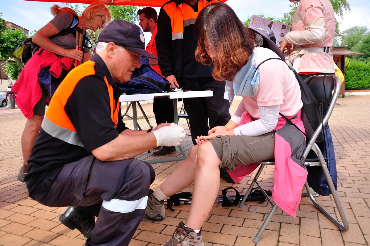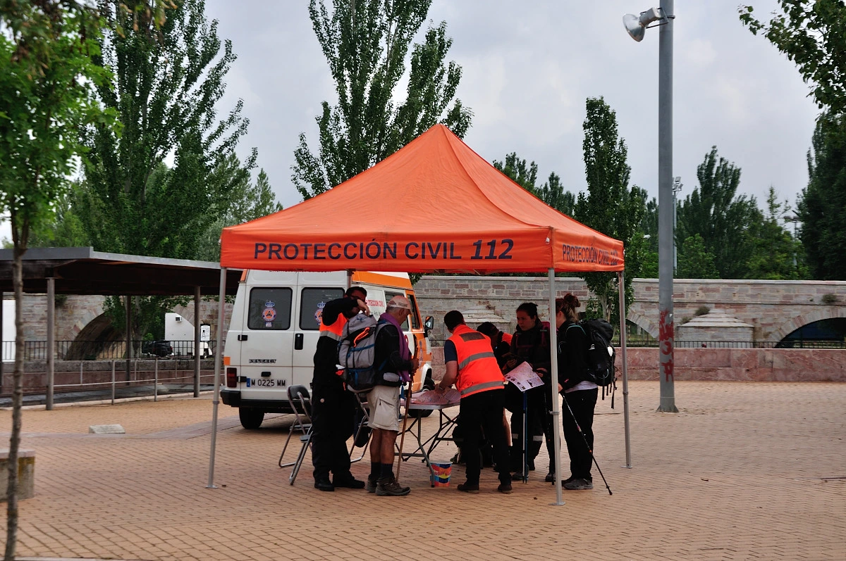 좀더 걷다보니 순례자를 도와주는 봉사대가 보였다. 다리를 다쳤다고 하니 다시 한 번 소독과 약을 발라주고, 정 힘들면 병원까지 데려다 주겠다고 한다. 태열맘님은 치료를 받고 그냥 걷겠다고 하고, 봉사자들에게 감사의 말을 한 뒤 알베르게를 향해 마저 걸었다.