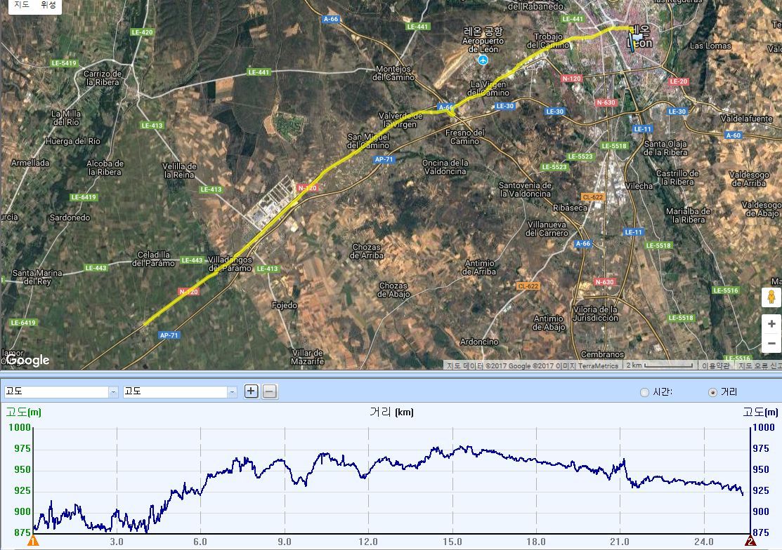 주요지점 León ~ La Virgen del Camino ~ San Miguel del Camino ~ San Martín del Camino