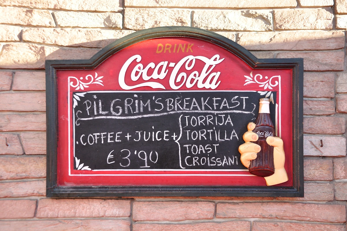 걷는 동안 마을이 나타날때마다 쉬어간다. 프랑스길은 일부 구간을 제외하고 대략 5~10km 사이마다 마을이 존재한다. 그래서 적당히 쉬었다 가거나 나름에 일정을 만들어 갈 수도 있다. 일행들은 Bar에 들러 쉬는것을 좋아한다. 커피 한 잔을 하던가, 아니면 점심식사를 대신하기도 하며, 화장실을 이용할 수도 있고, 때로는 Sello를 받을 수 있기 때문이다. 무엇보다도 싸늘한 날에 추위를 피할 수 있는 순례길 장소는 Bar 또는 Cafe 뿐이다. 하지만 매 번 쉴때마가 공짜로 앉아 있을 수 없어 커피 또는 맥주를 주문해야 하는데 이 비용도 만만치 않다. 하루에 4번 정도 들르며 5 ~10유로 정도 써야 한다. 큰 돈이 아닐 수 있지만 매일매일 이렇게 한다면 꽤나 여유있게 여비를 준비해야 한다. 좀더 저렴하게 쉬려면 길변에 벤치나 쉼터를 이용하고, 배낭에 음료나 커피 등을 싸가지고 다녀야 한다. 이 또한 나름에 취향으로 선택하면 된다.