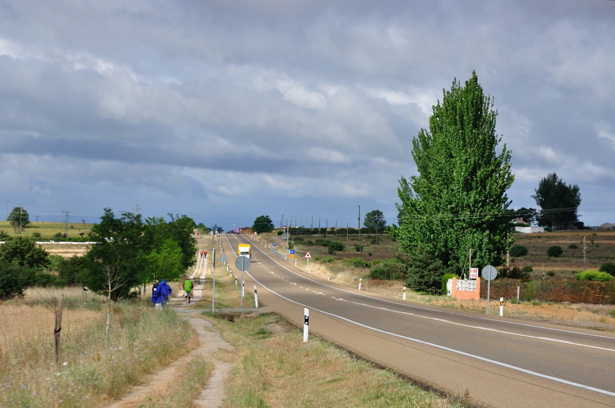 San Martin del Camino까지 걷는 길은 심심하다. 그나마 도로변인데다가 마을이 자주있기에 단순함을 없애준다. 장거리 길이지만 그닥 힘들지 않다. 게다가 가로수가 있어 그늘도 많다. 더위를 피해 쉬어갈 여지가 있어 메세타평원보다는 걷기에 훨씬 수월하다. 6월 말이라 꽤 더울줄 알았는데 지대가 높아서인지, 아니면 아침에 내린 비때문인지 선선하고 이따금 바람이 많이 불어 이보다 걷기 좋은 날씨는 없을듯 싶다. 행운이 따르는지 다른 사람들의 걱정만큼 더운 여름이라는것을 잊은채 순례길을 걷고 있다.