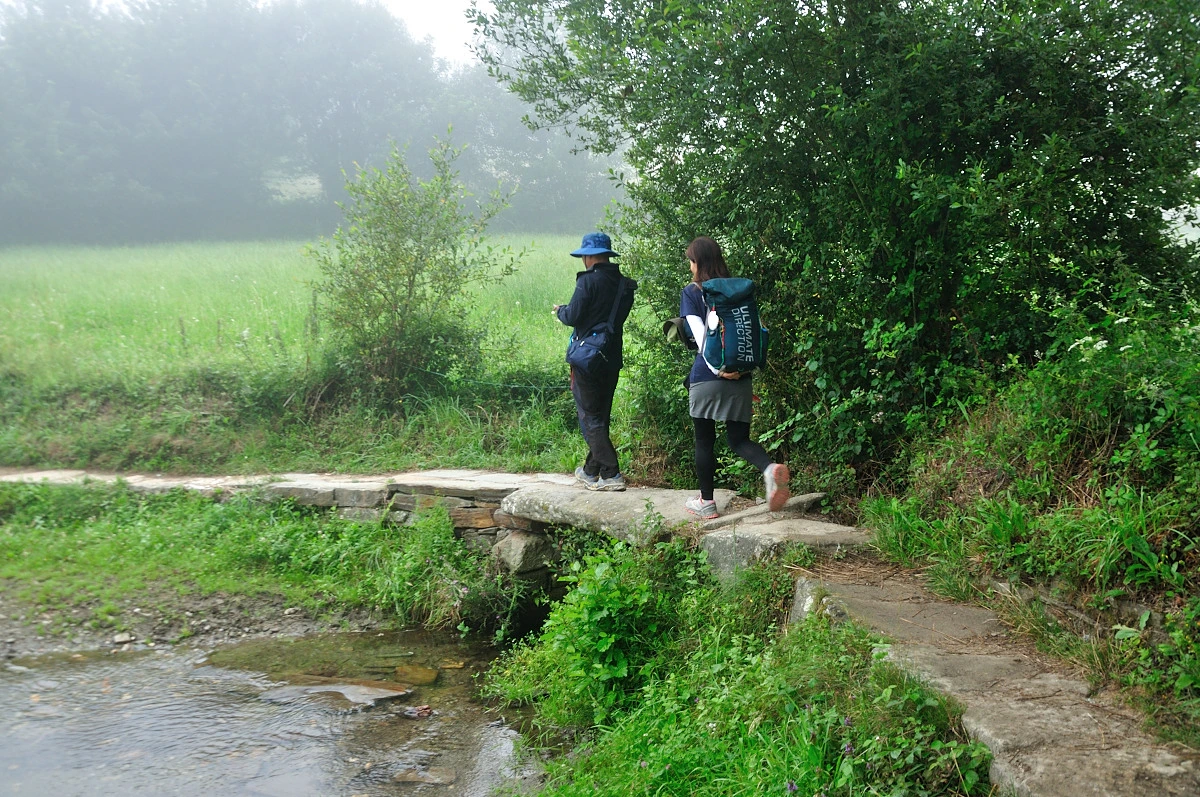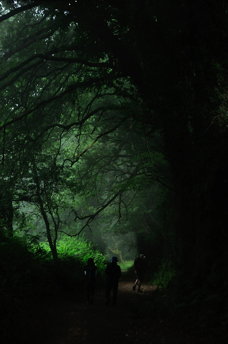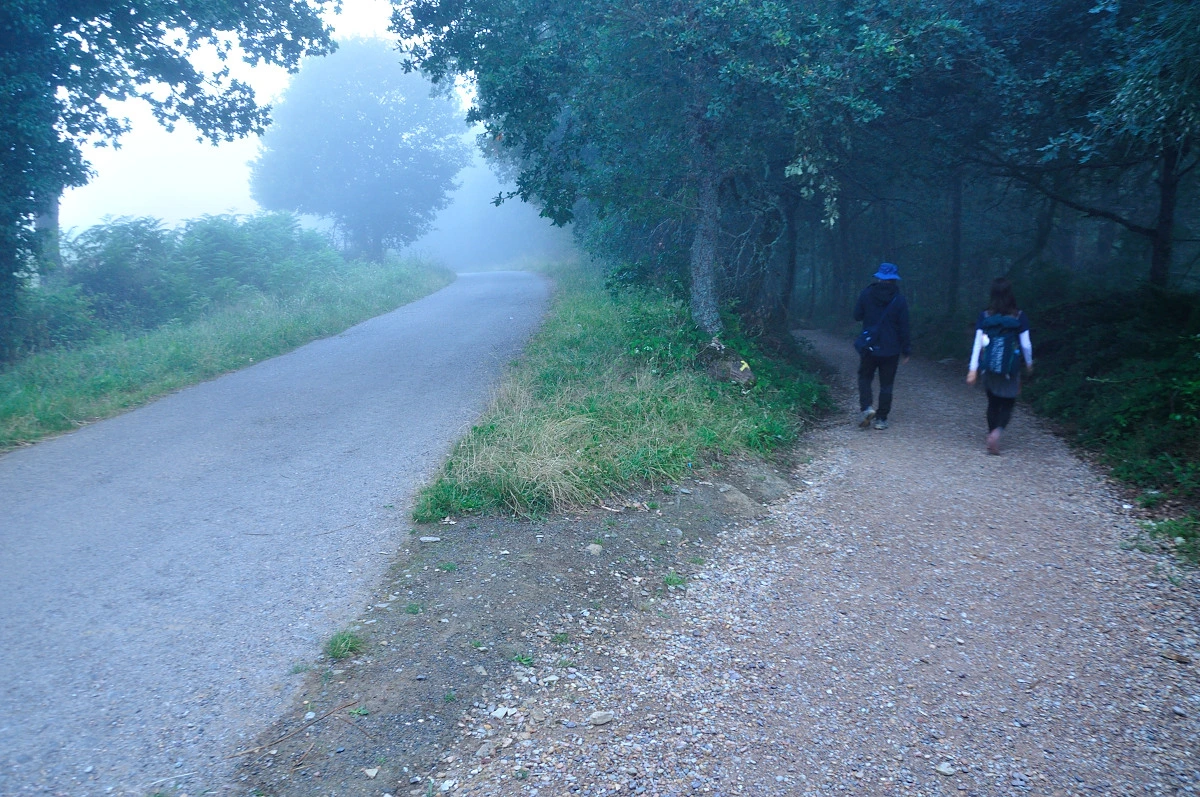 초반 오르막을 오르는 동안은 어둠이 짙게 내려와 헤드랜턴에 의지하며 걸어야 했다. 가로등도 없고 민가에 불빛조차 없는 그런 숲길이다. 일행 뒤편에 다른 순례자들이 켜놓은 작은 헤드랜턴 불빛이 일렬로 다가오는 모습은 도깨비불이 우리를 따라 오는것처럼 보일정도이다. 우리는 그 불빛을 따라 서로 앞서거니 뒷서거니 하며 어두운 숲길을 헤쳐갔다. 그리고 한 두 시간이 지나서야 해가 떠오르기 시작하여 주변이 밟아졌다. 갈리시아 지방은 평지가 없는 구릉과 산지가 연이어 있는 곳이다. 그래서 예전처럼 평지에 뜨는 일출은 볼 수 없다. 대신 숲이 많아 더운 날에도 시원하고 상쾌하게 걸을 수 있는 지역이다. 그러다 보니 숲길,둘레길을 걷기 좋아하는 한국사람들에게는 가장 어울릴만한 곳도 갈리시아 지방의 순례길이다.