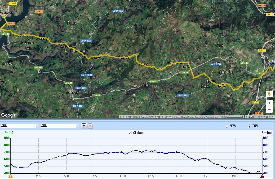 주요지점 Sarria ~ Sabenche ~ A Serra ~ Leiman ~ Ferreiros ~ Marcadoiro ~ Portomarín