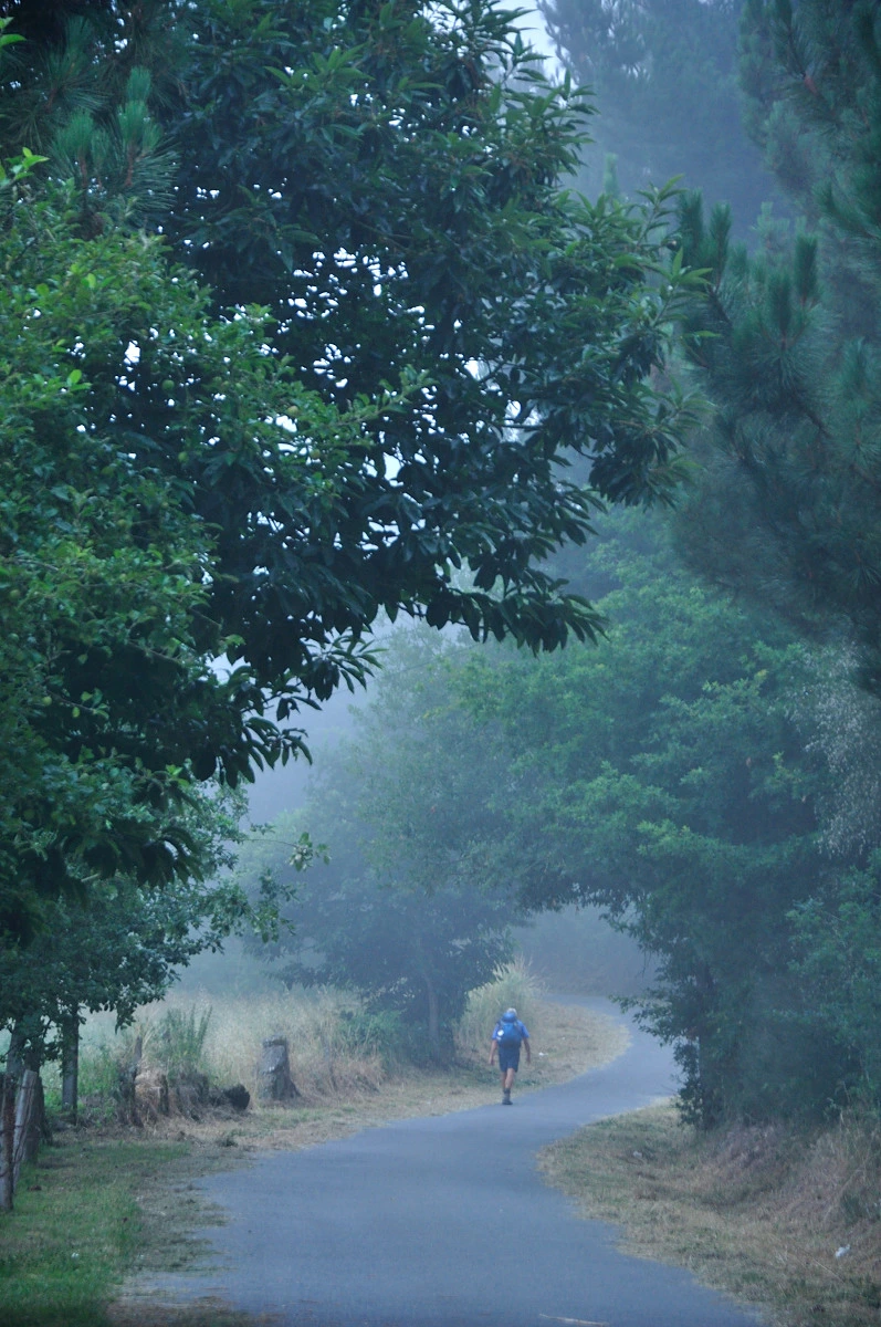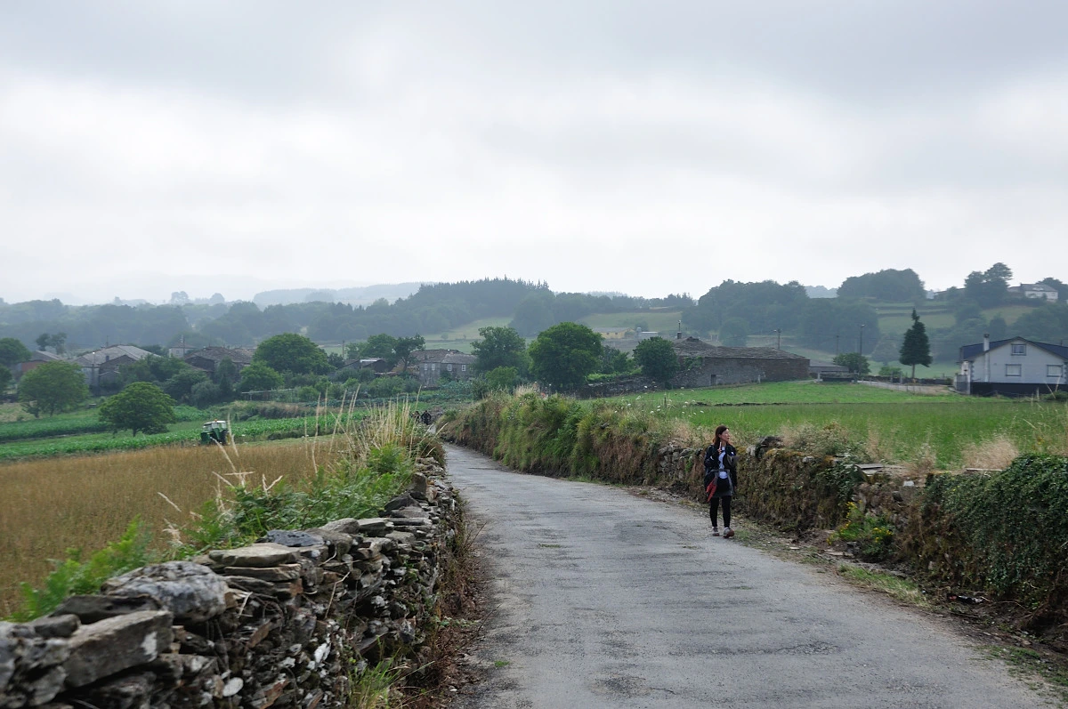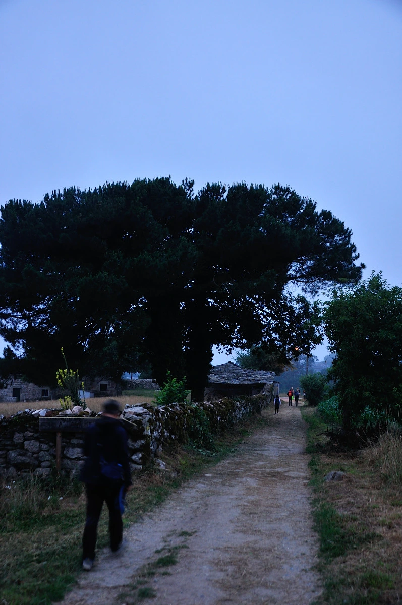 새벽에 걷는 풍경도 사뭇 다르다. 탁트인 풍경은 더 이상 볼 수 없다. 시선을 어느뱡향으로 돌려도 막혀있다. 숲이 되었던, 산지가 되었던 시선이 멀리까지 가지 못한다. 게다가 새벽에는 안개가 많이 낀다. 을씨년 스러워 7월 이지만 덥다라는 느낌을 가질 수 없다. 오히려 아르수아를 지나 산티아고에 다다를수록 더위를 느꼈다. 불켜진 농가의 풍경도 다시 익숙해 졌다.